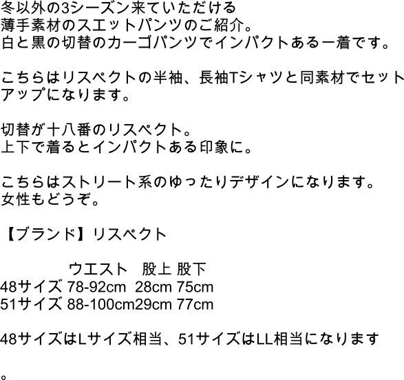 スエットパンツ リスペクト 51サイズ REL049911-12 メンズカジュアル 1点物 30代 40代 50代 新品 正規品