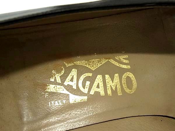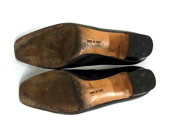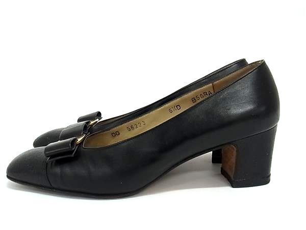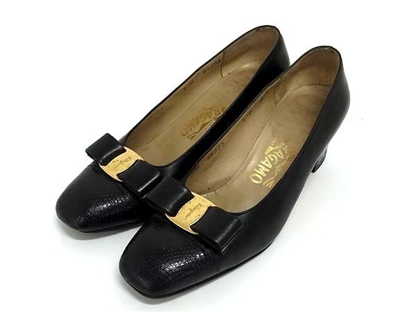 Salvatore Ferragamo フェラガモ ヴァラリボン リザード型押しレザー ヒール パンプス サイズ 6 1/2 (約23.5cm) 靴 ブラック系 DJ0850