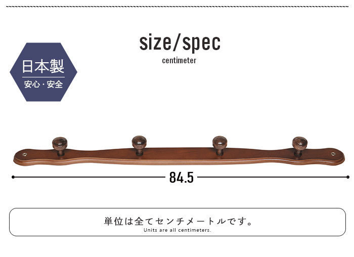 | 商品名 | コートハンガー 壁掛け 4連フック 天然木 木製 杉 日本製 玄関 おしゃれ 壁 洋服掛け ハンガーフック コート掛け ブラウン M5-MGKNG00041BR |