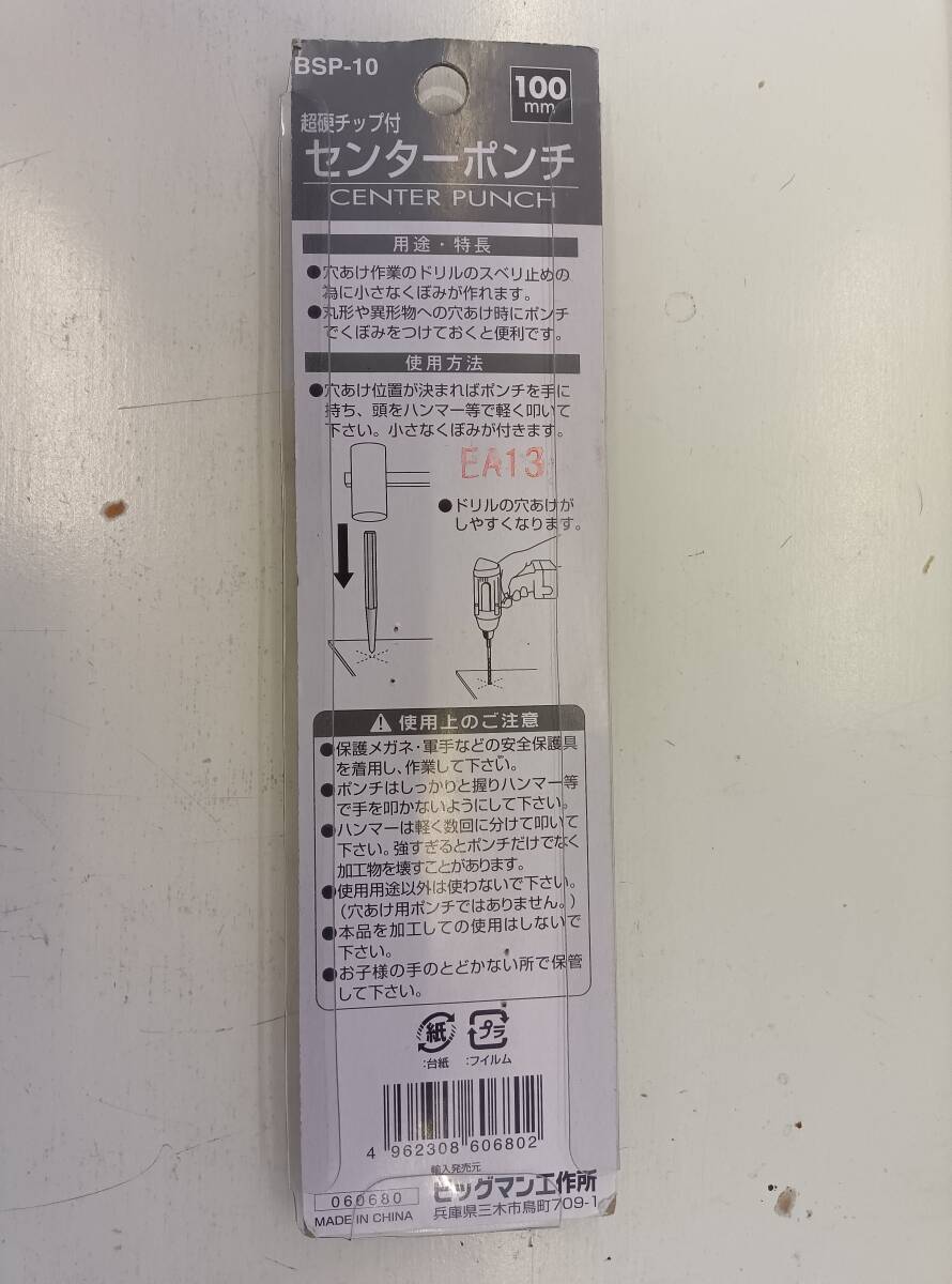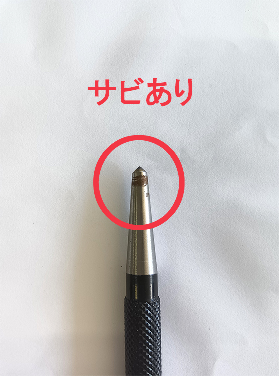 ・丸型や異形物への穴あけ時にポンチでくぼみをつけておくと便利です。