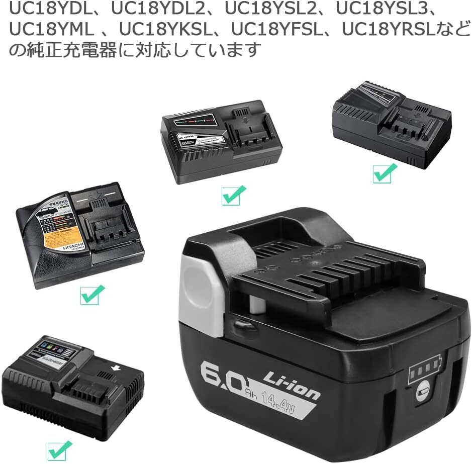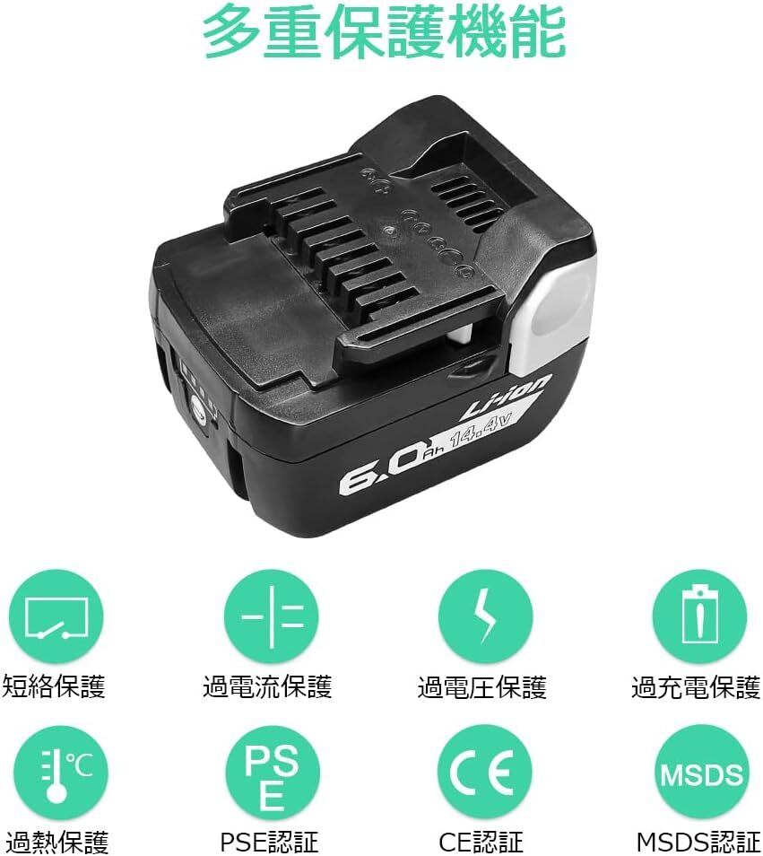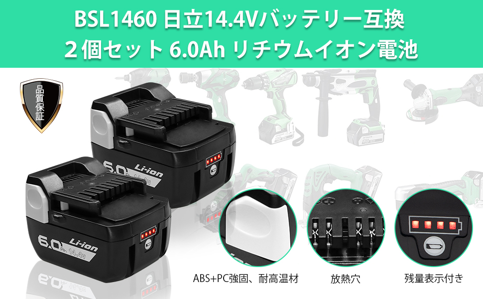 【送料無料】新品 HiKOKI 日立 BSL1460 互換バッテリー2個セット 14.4V 6.0Ah(6000mAh) 残量表示 PSE認証済み ハイコーキ互換品 二個セット