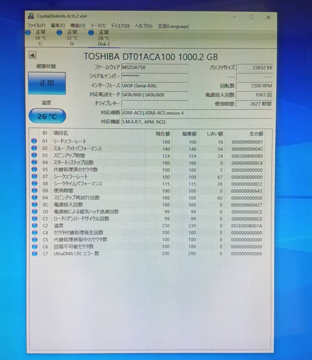 TOSHIBA製 内蔵HDD 3.5インチ 1TB 正常判定 中古動作品