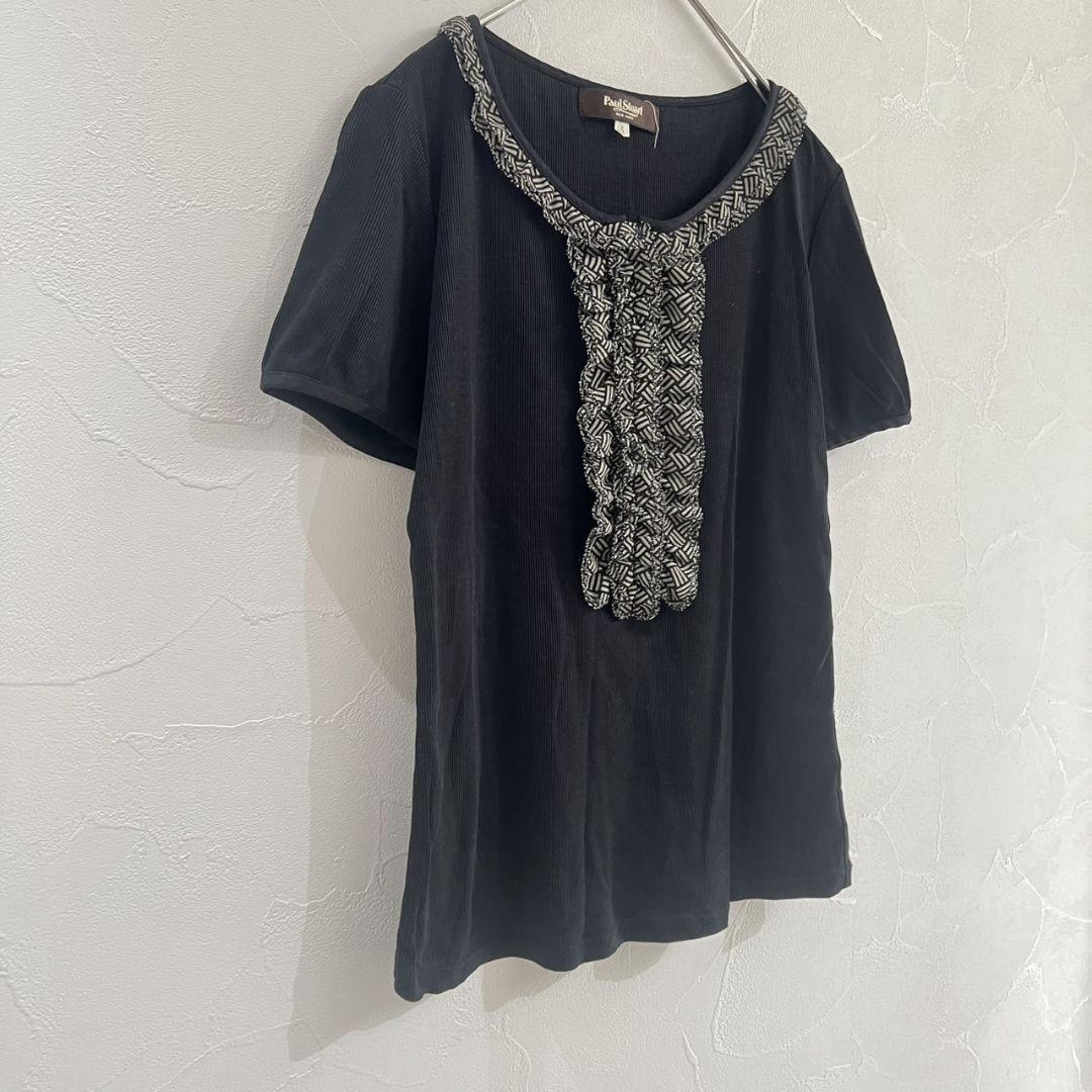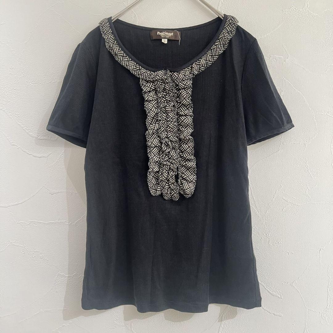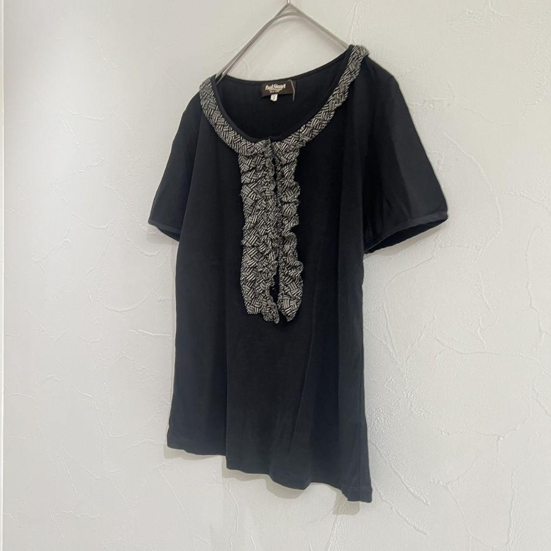 半袖 ブラウス クルーネック フリル トップス M ブラック