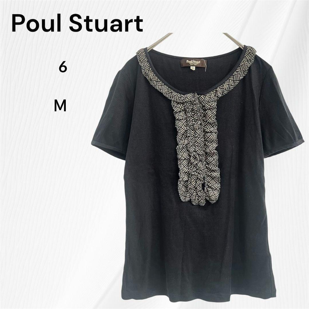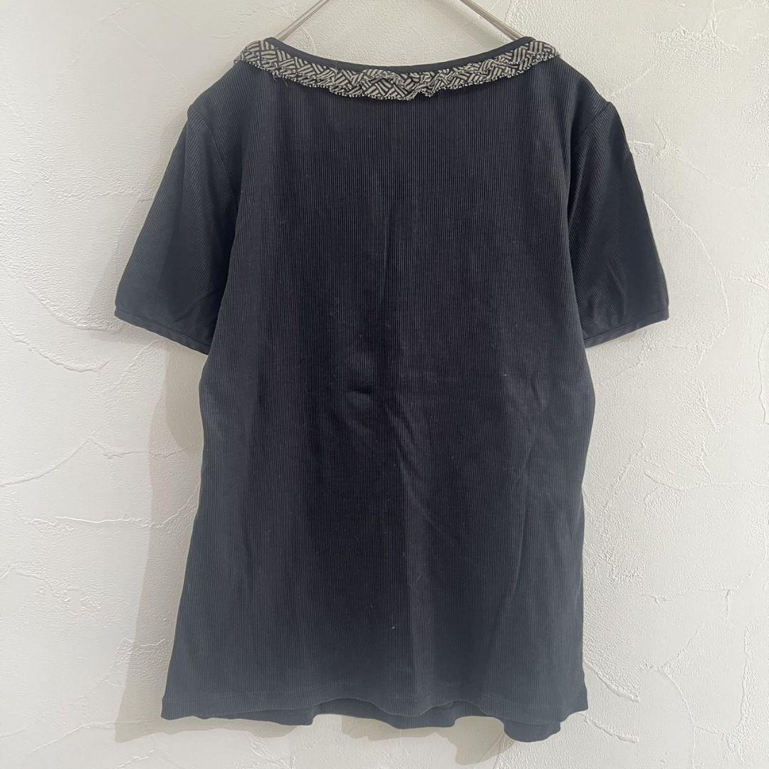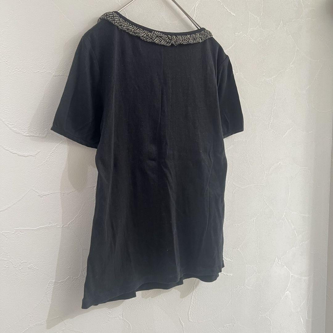 半袖 ブラウス クルーネック フリル トップス M ブラック