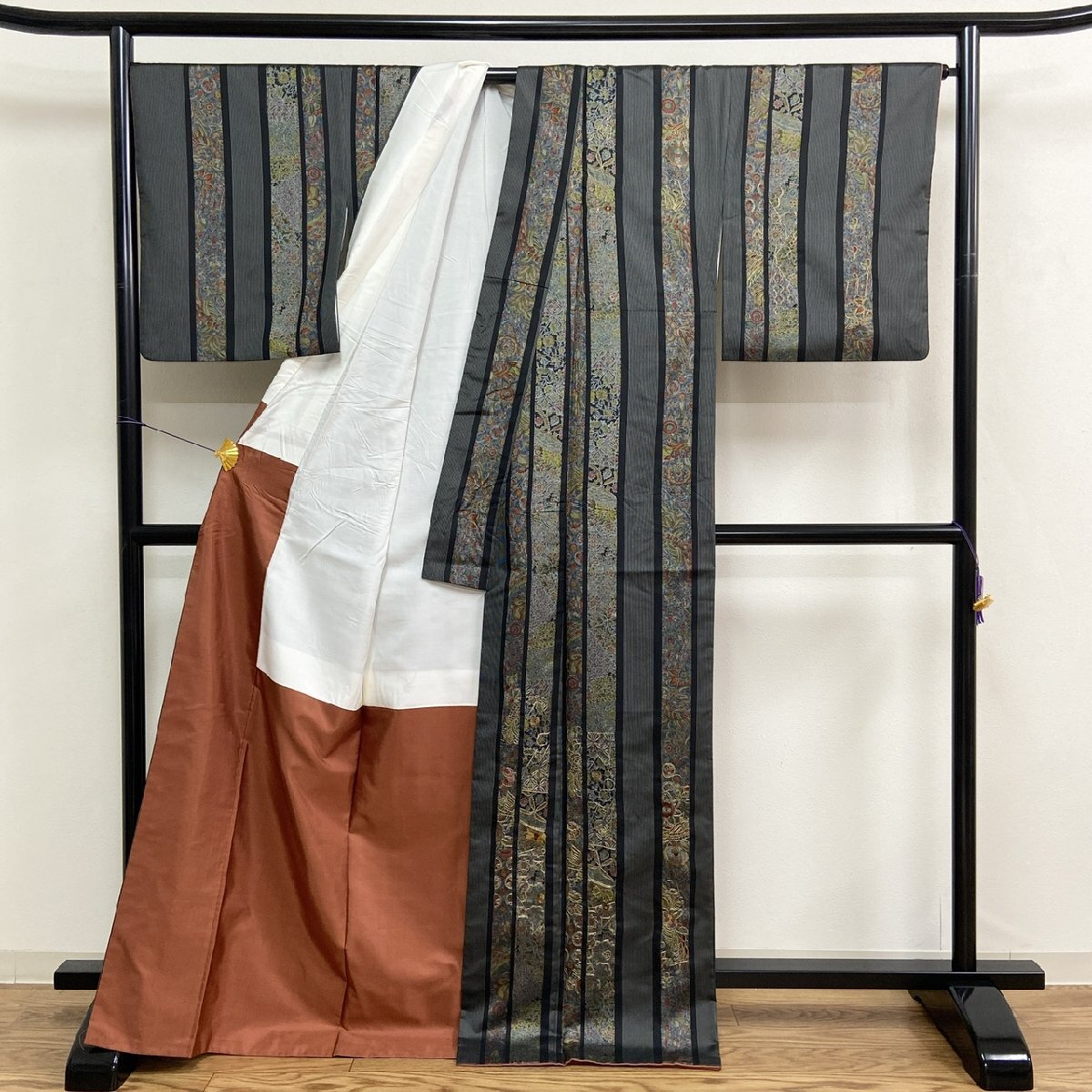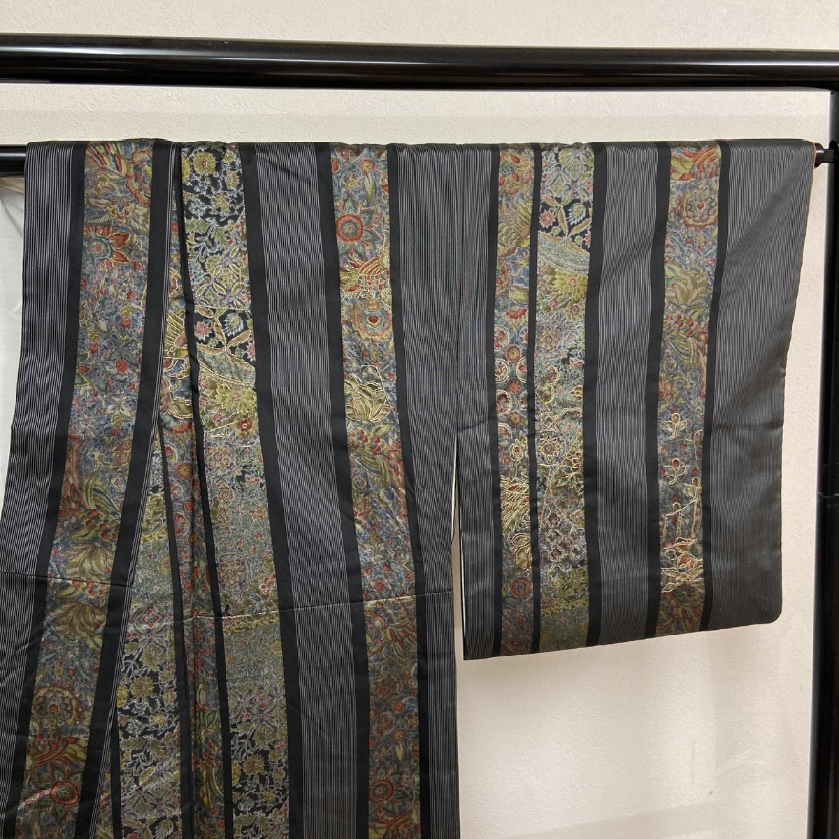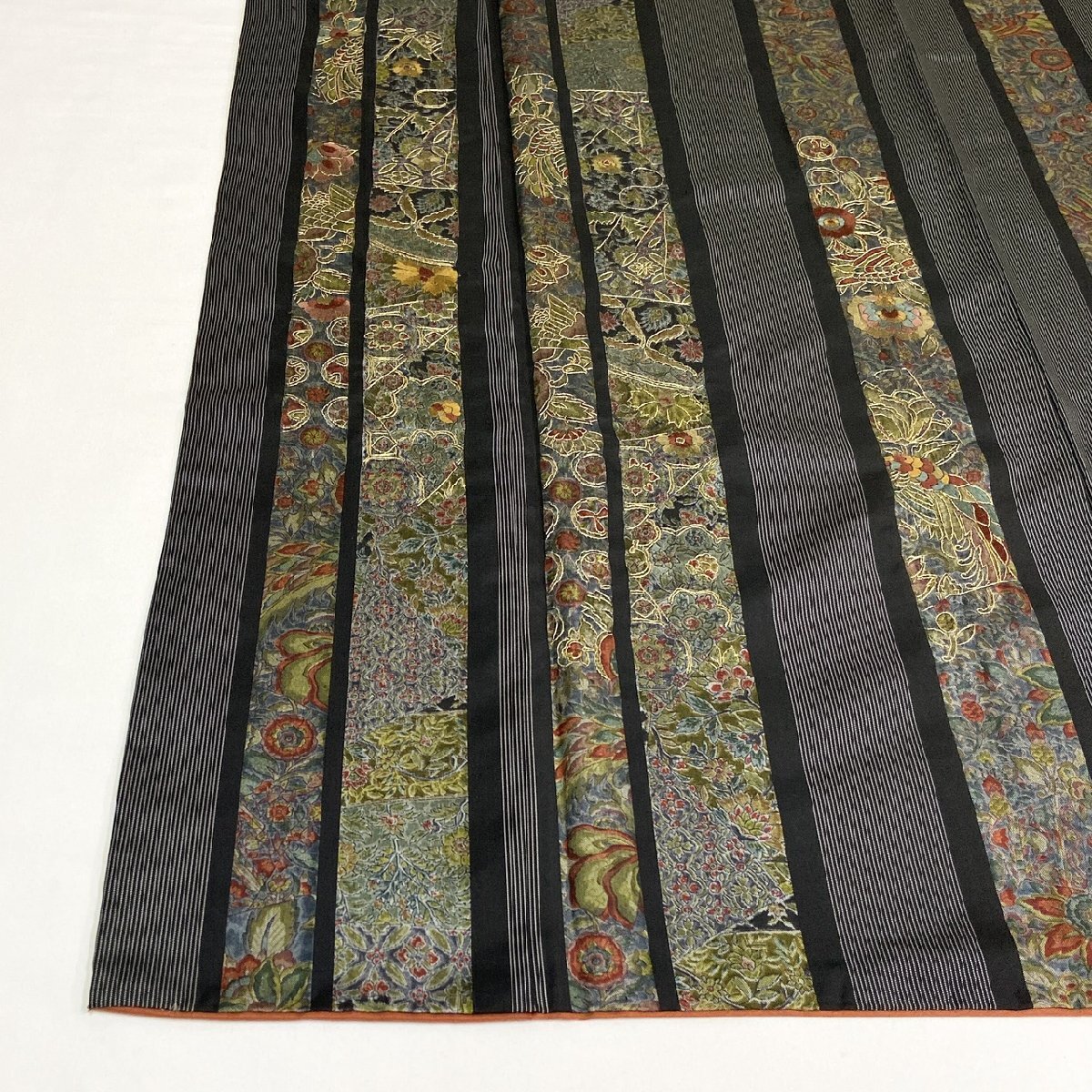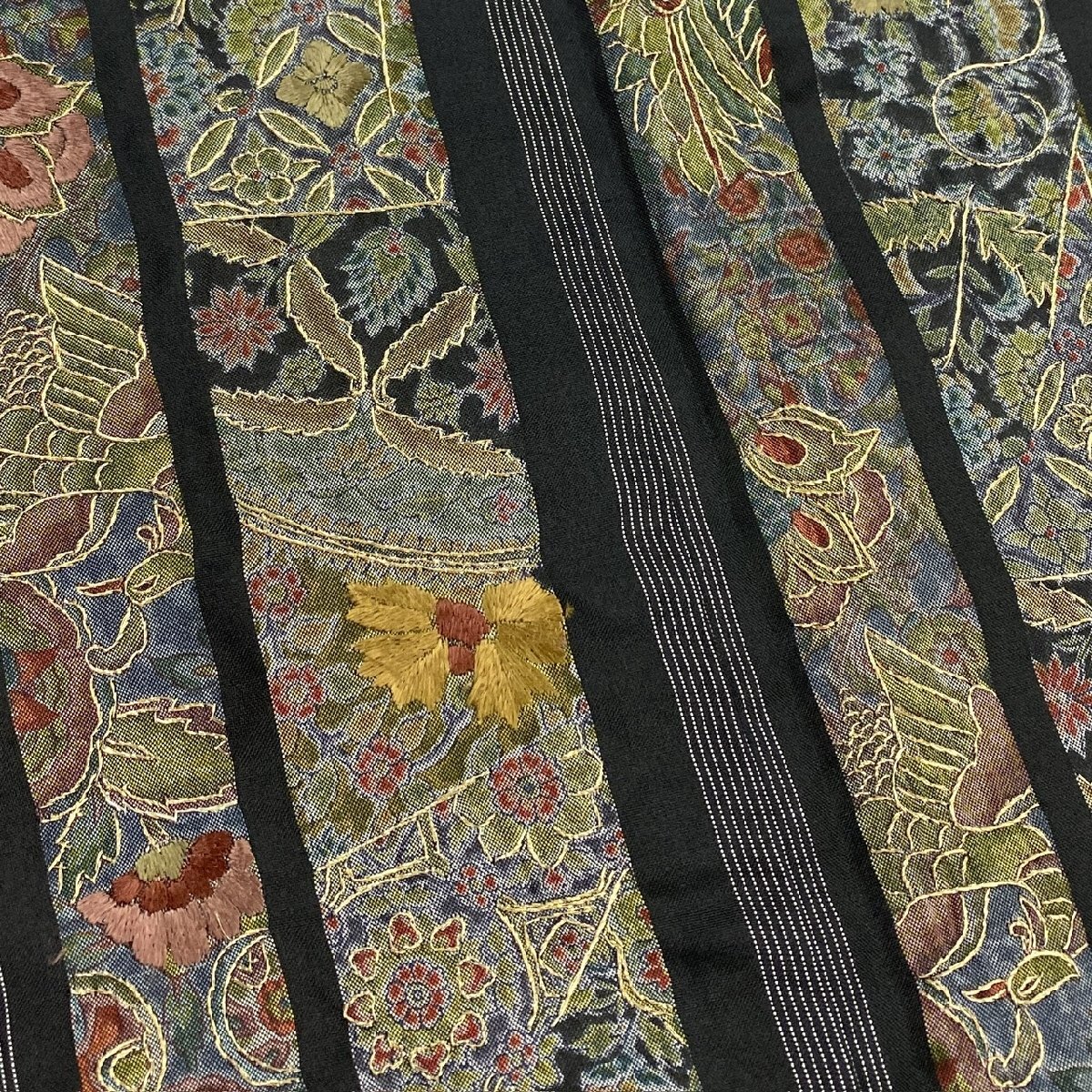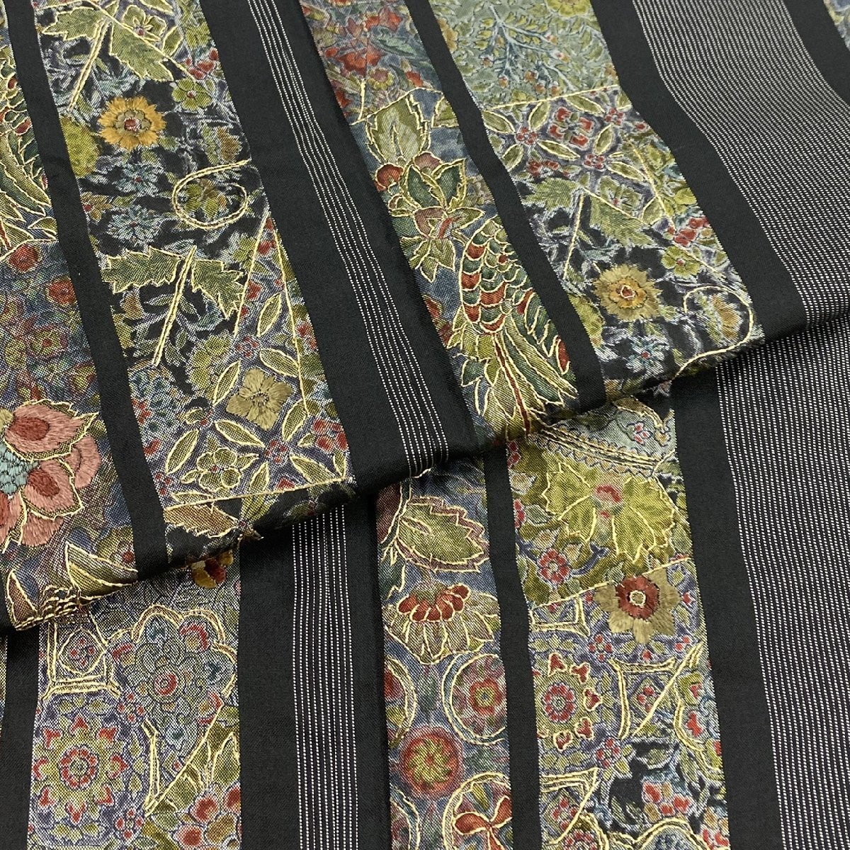 着物月花 蘇州刺繍 更紗文様 紬 正絹 金糸 ki6075