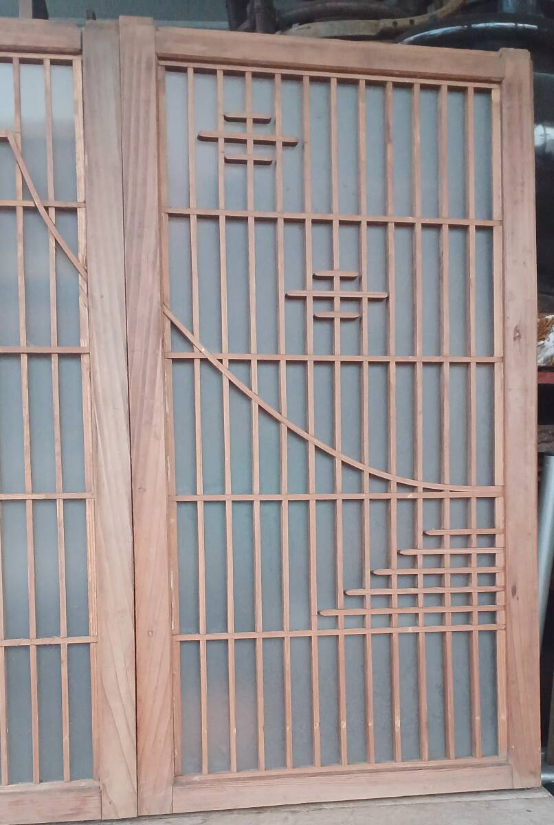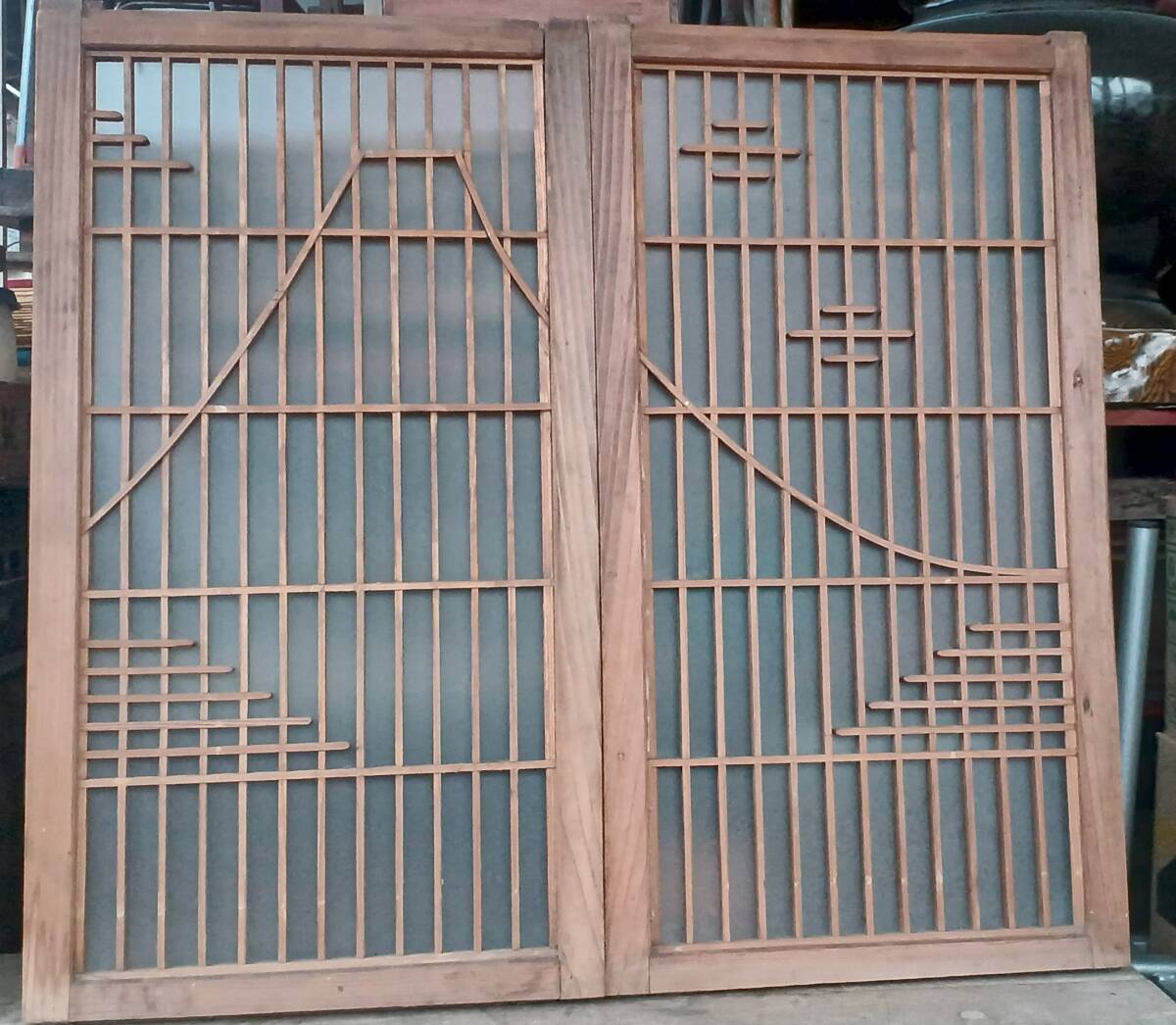 !秀品!建具「富士山柄・組子細工・1対」幅418×高さ770×厚み30ミリ(詳細不明)
