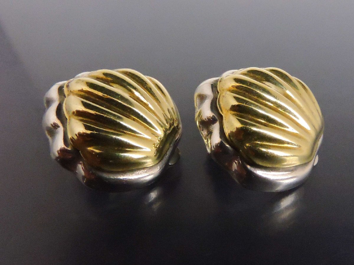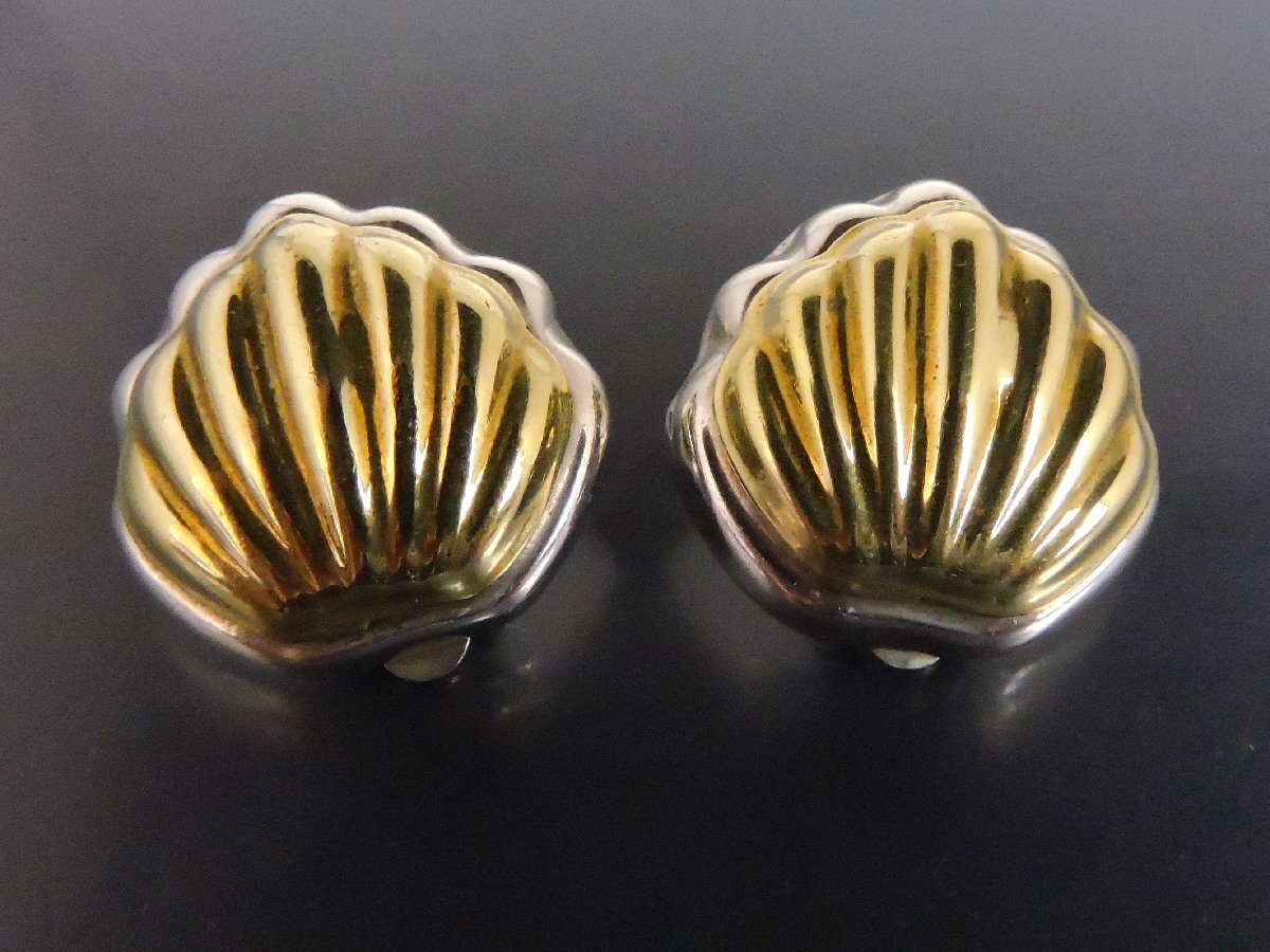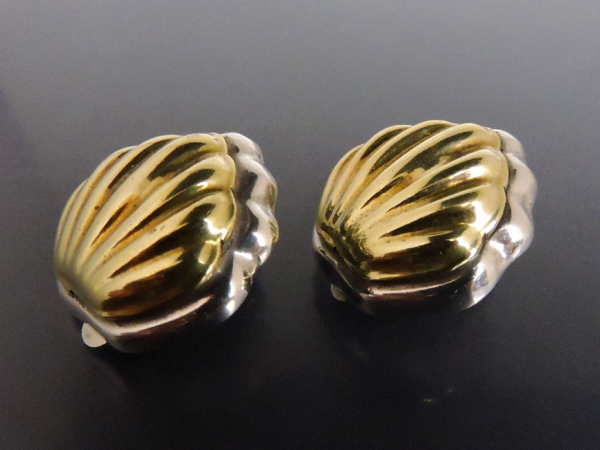 シルバー925 メキシカンジュエリー イヤリング 貝 シェルモチーフ シルバー×ゴールドカラー 横約2.4㎝ MEXCO LATON