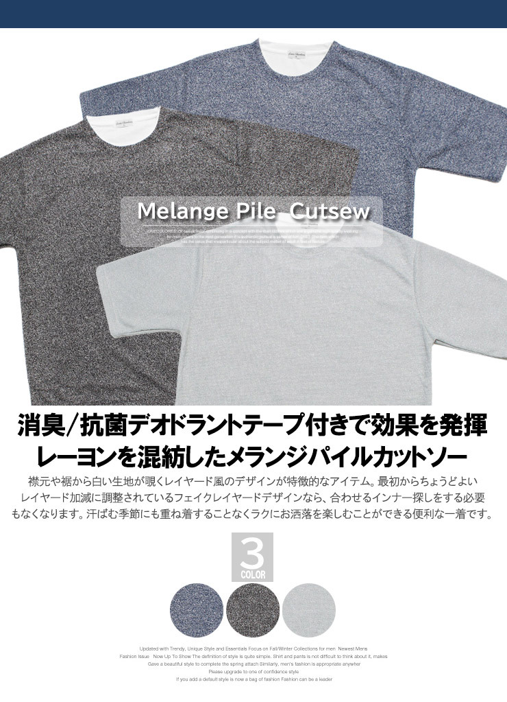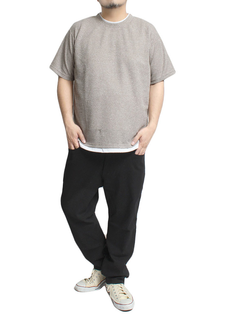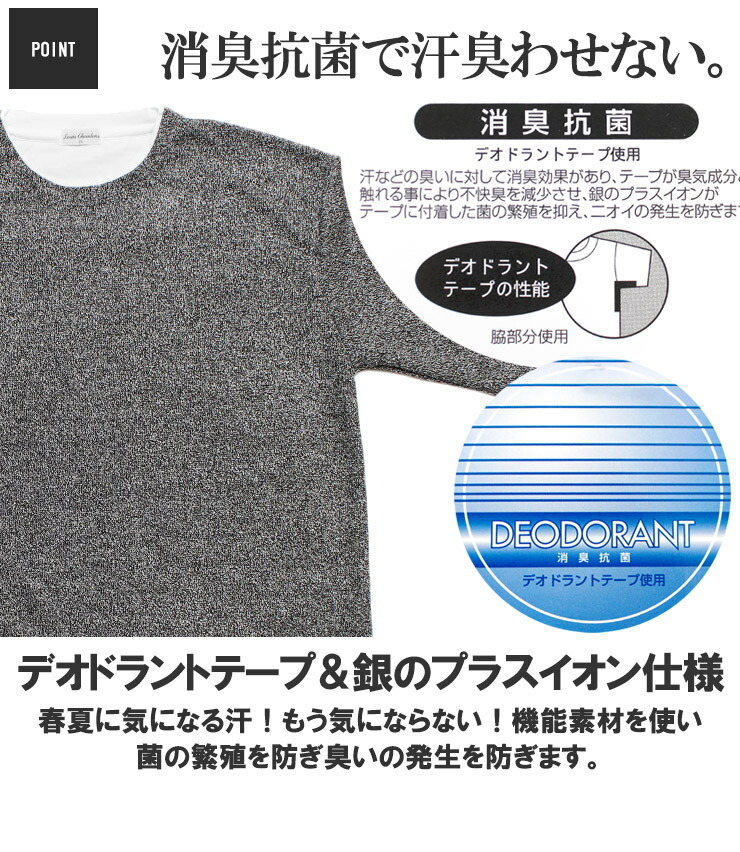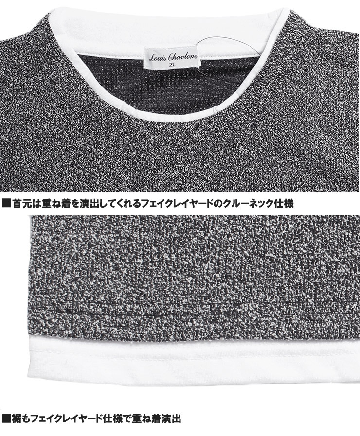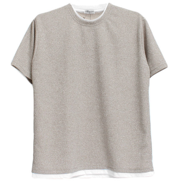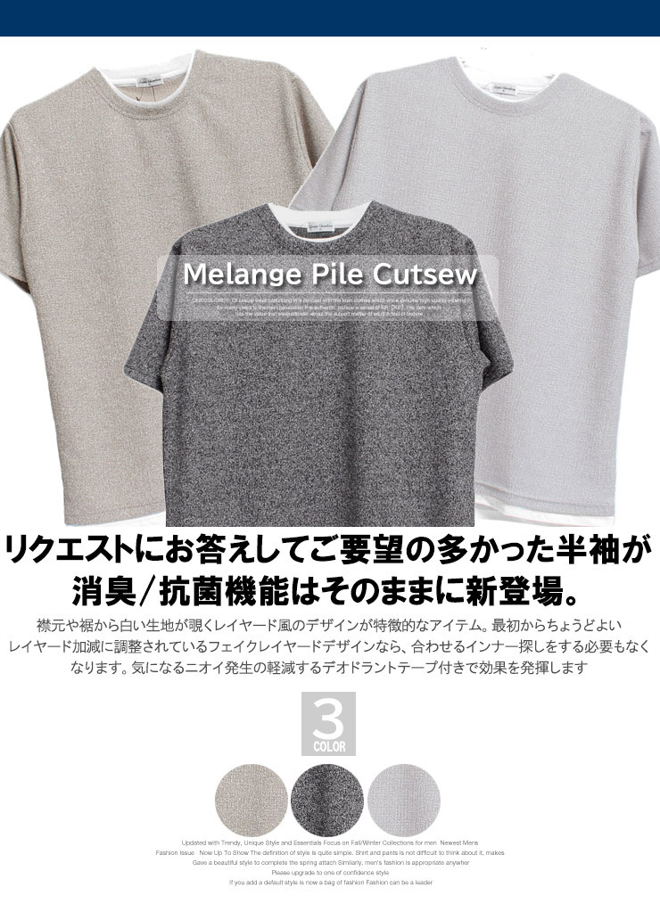 | 商品名 | 【新品】 4L グレージュ×半袖 半袖 Tシャツ メンズ 大きいサイズ メランジ パイル フェイクレイヤード 消臭 抗菌 クルーネック 半袖 カットソー |
