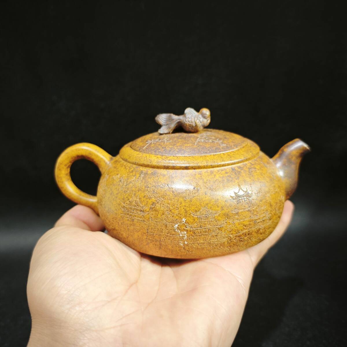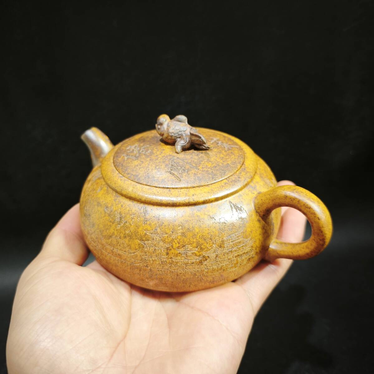 【超珍館蔵】紫砂壺 金魚壺 顧景舟款 古紅窯燒 茶具 茶道品 置物 賞物 古賞物 古董品 古美術品 時代物 旧家蔵出 稀少珍蔵品