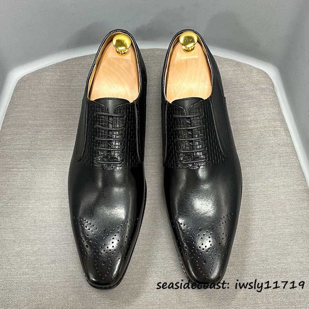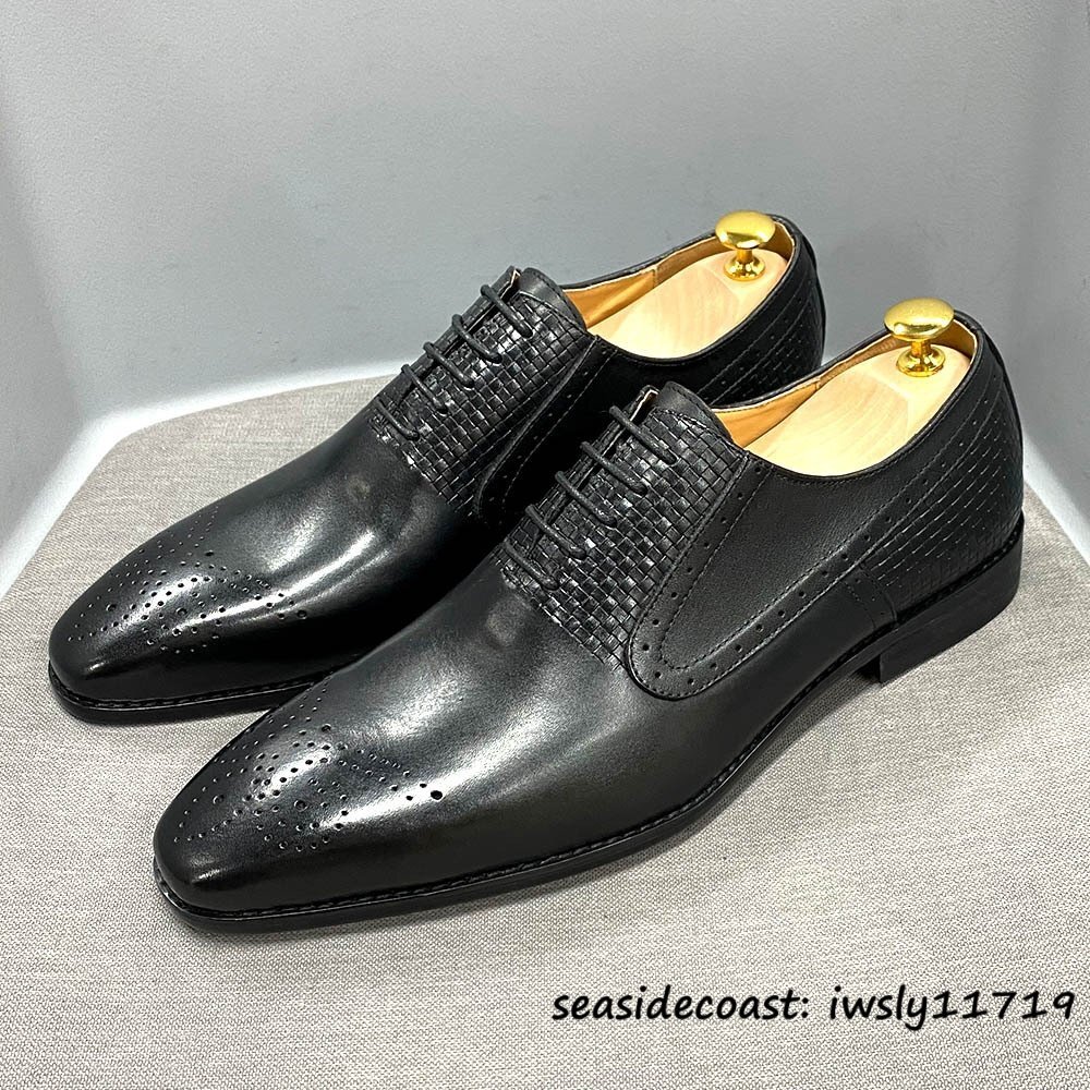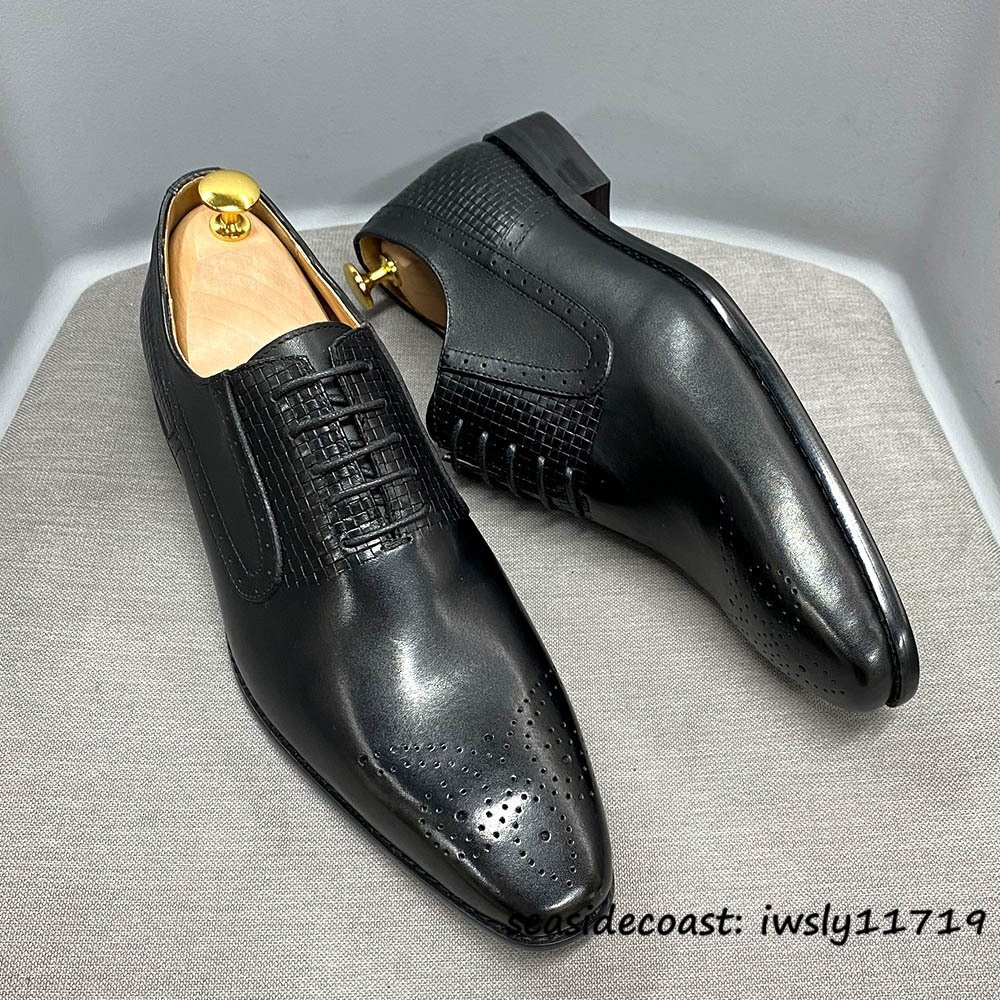 最上級★定価9万 ビジネスシューズ 本革 レザーシューズ 超希少 職人手作り 押し柄 ドレスシューズ 紳士靴 上質牛革 革靴 ブラック 26.0cm