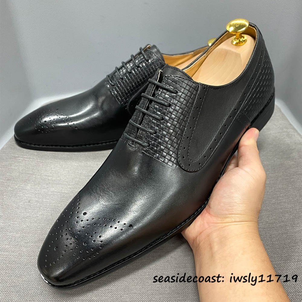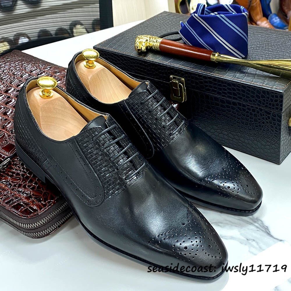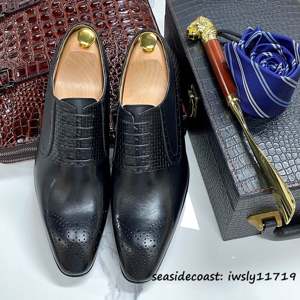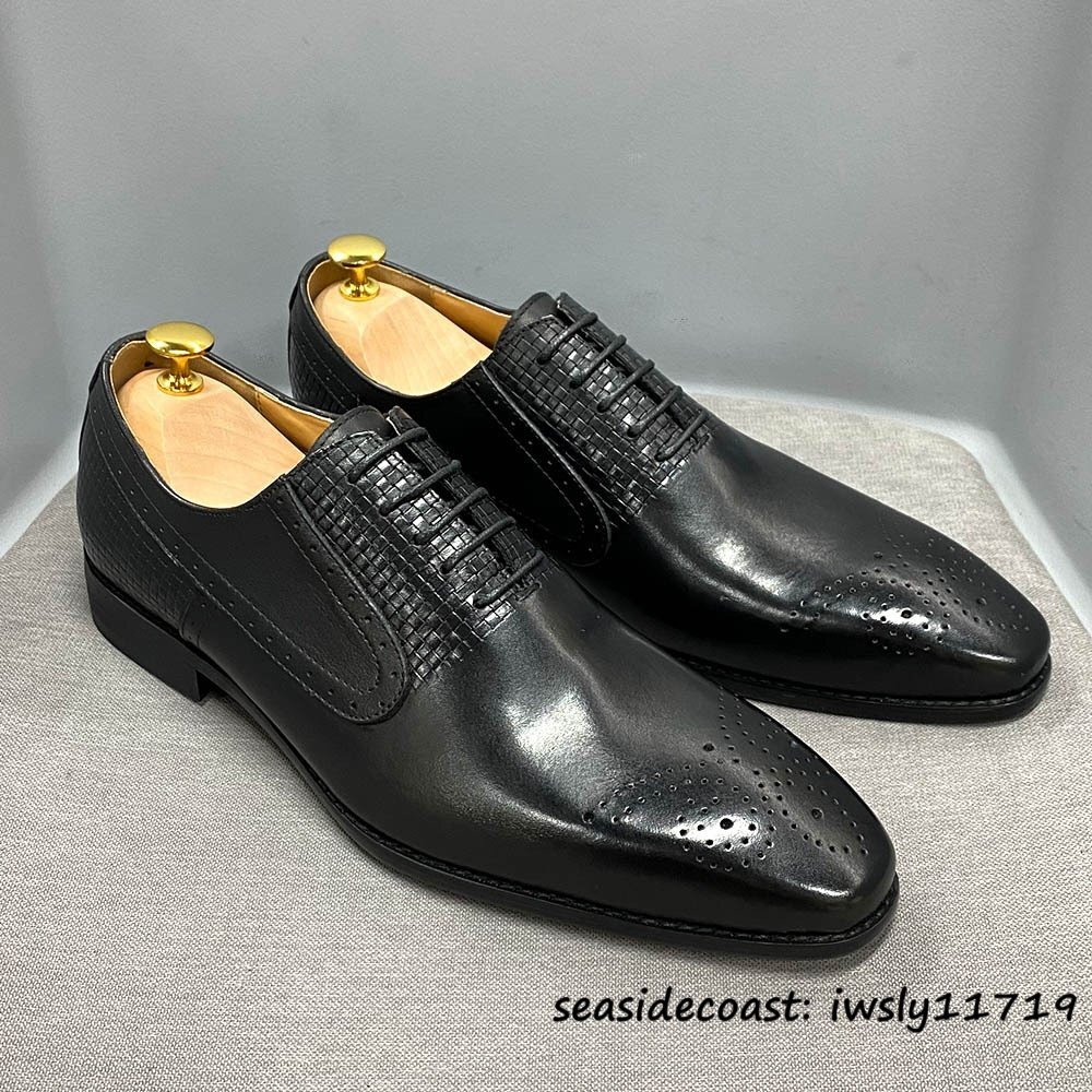 最上級★定価9万 ビジネスシューズ 本革 レザーシューズ 超希少 職人手作り 押し柄 ドレスシューズ 紳士靴 上質牛革 革靴 ブラック 26.0cm