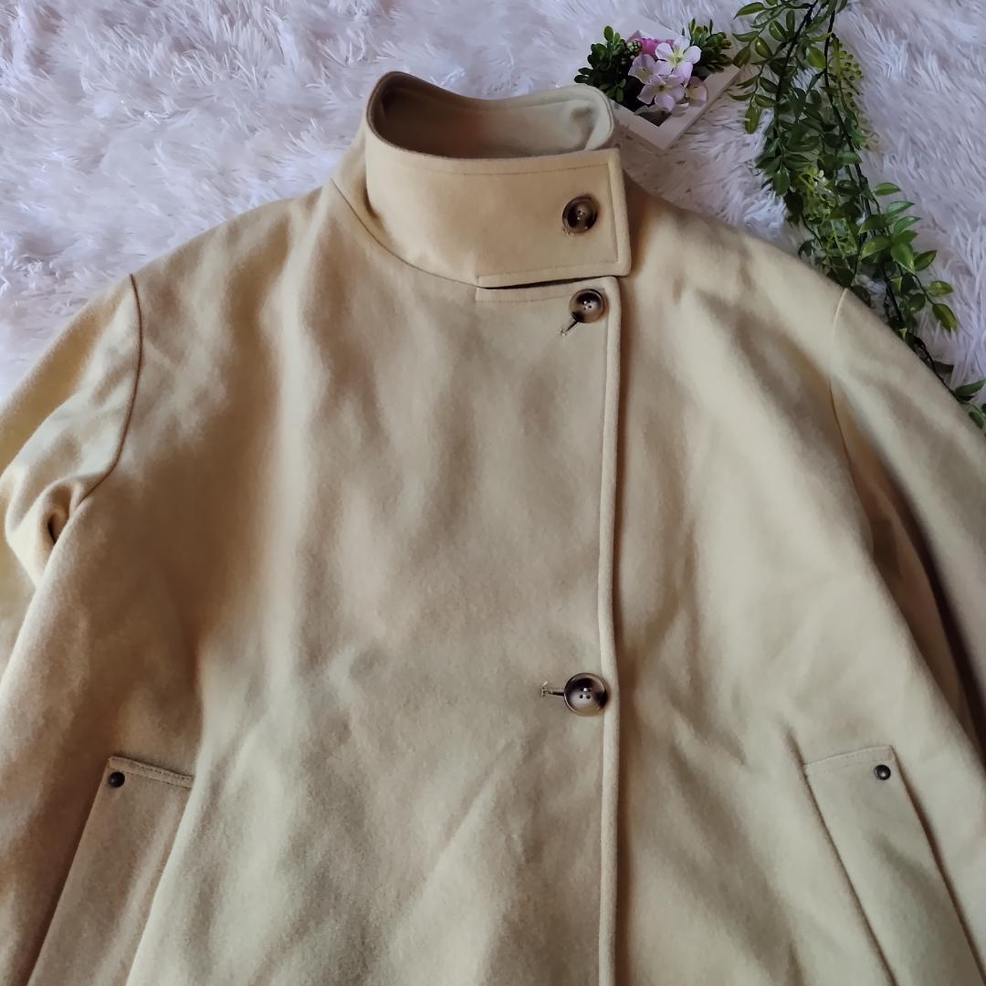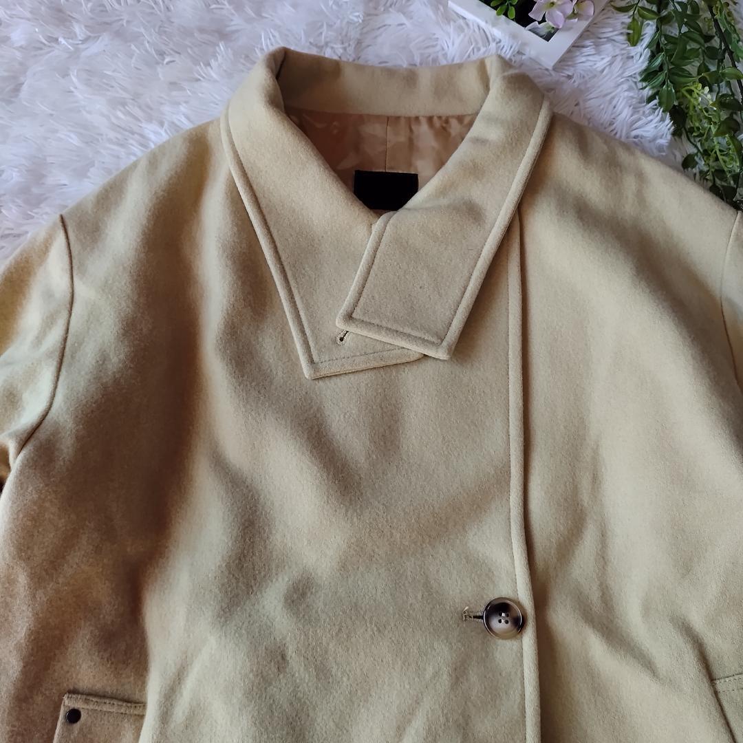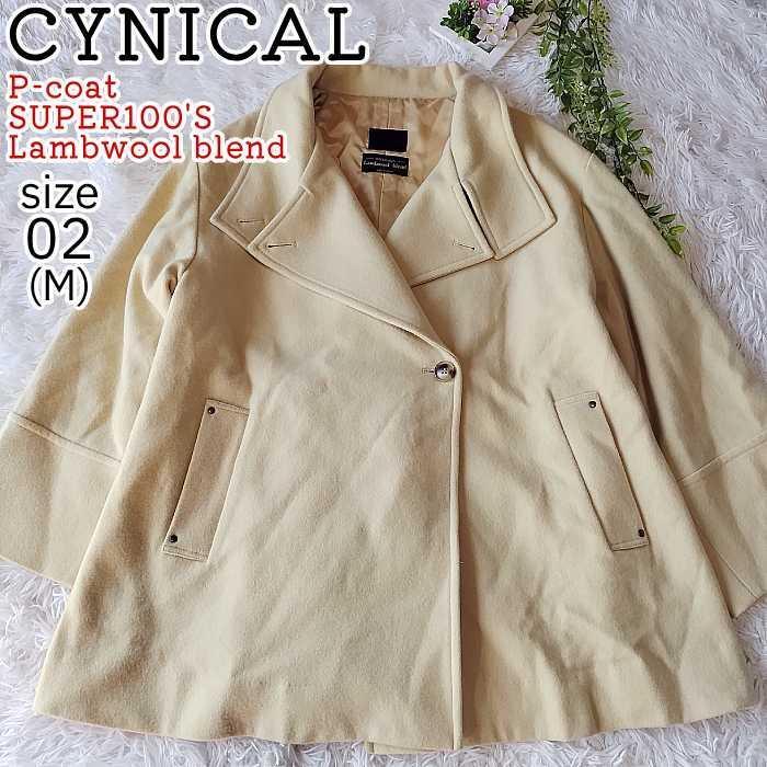 【美品】シニカル ピーコート SUPER100'S ラムウール 2WAY レディース M アイボリー Lambwool blend CYNICAL【J024】