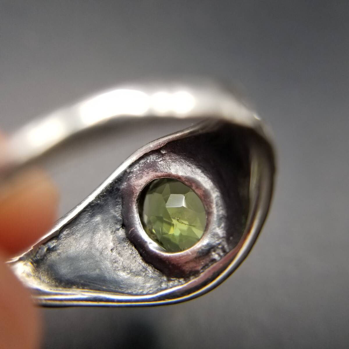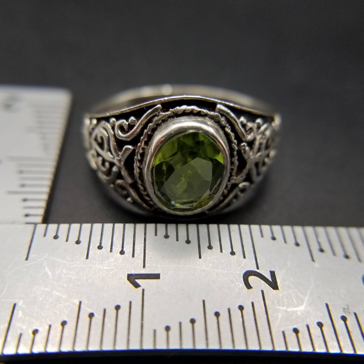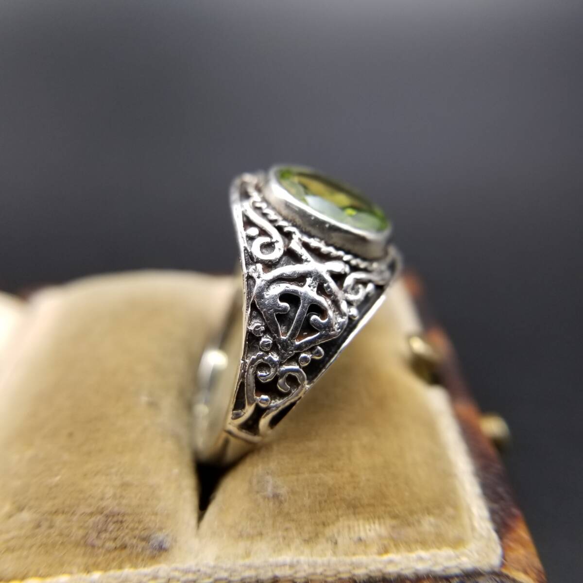 ペリドット オーバル ファセット ゴシック 925 シルバー ヴィンテージ シグネット リング 指輪 銀 サイド装飾 ユニセックス R16-T