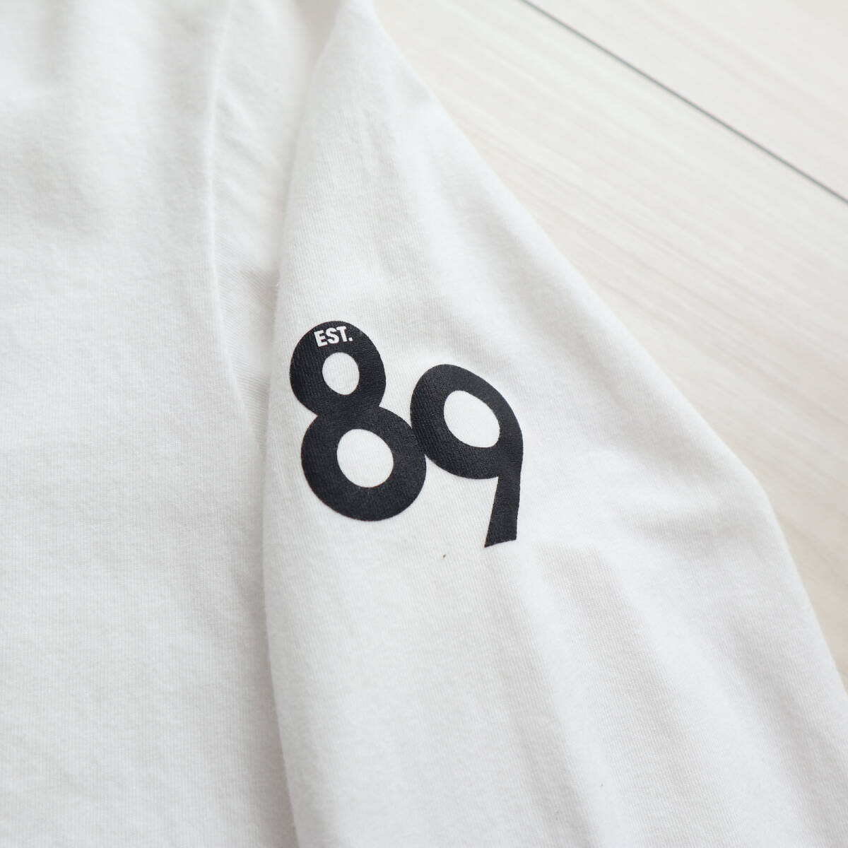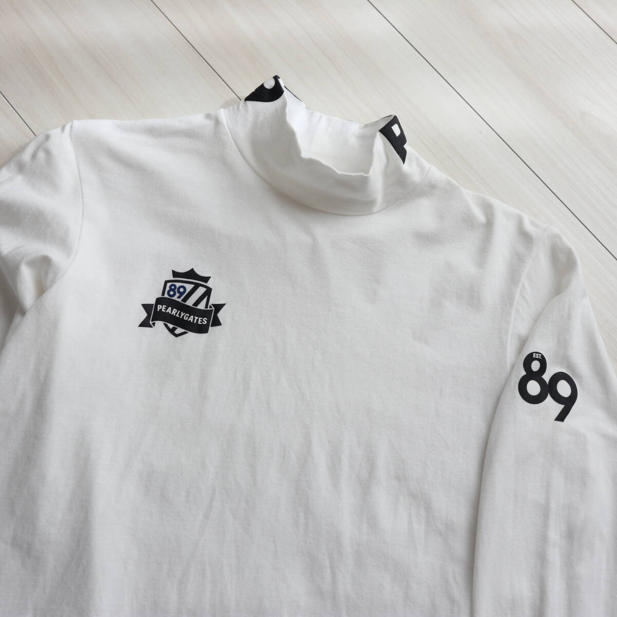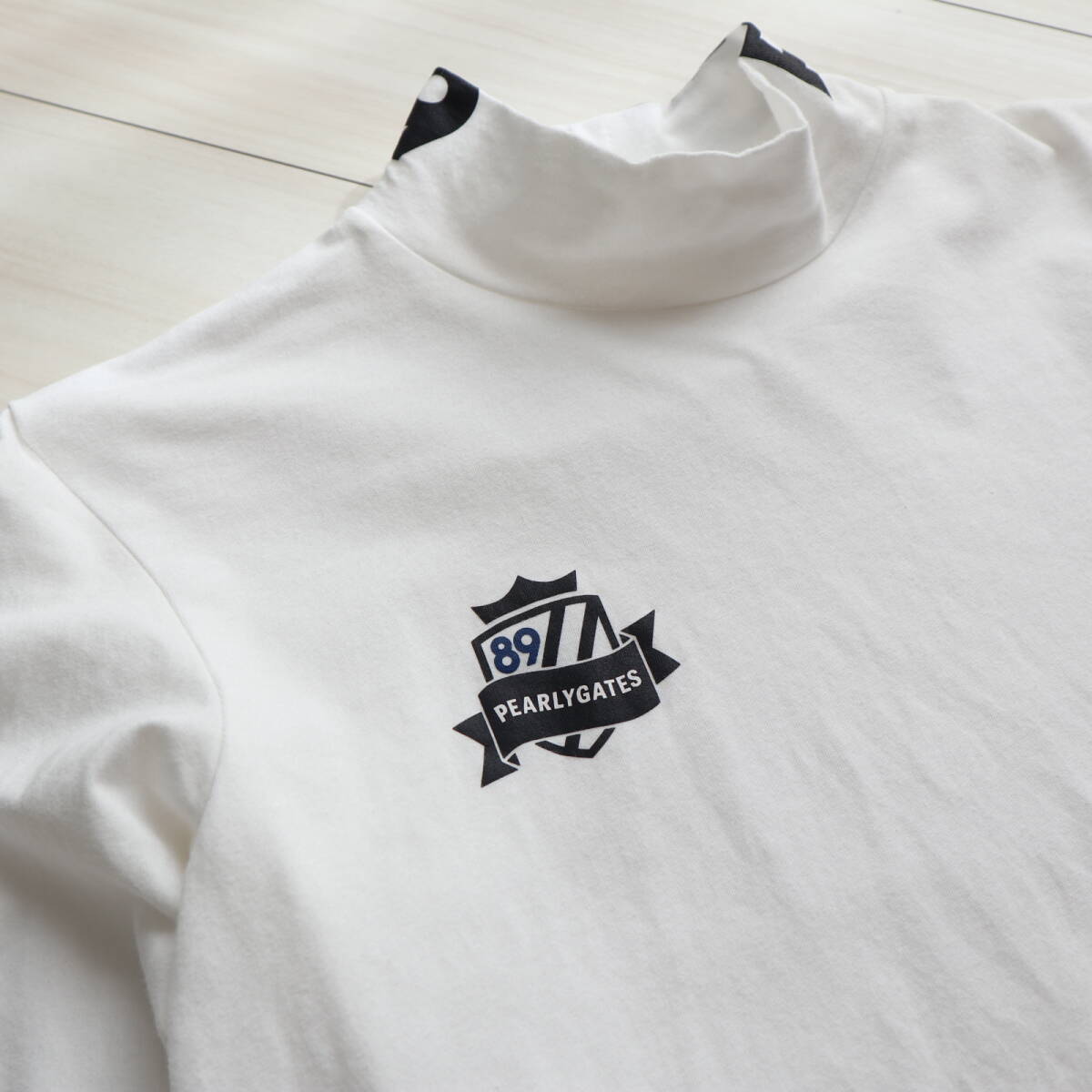 コットン&ポリウレタン混紡、高ストレッチ素材のモックネックシャツ。胸元、袖に89、ロゴプリント。ポイントは後ろネックのPG1989プリントです。