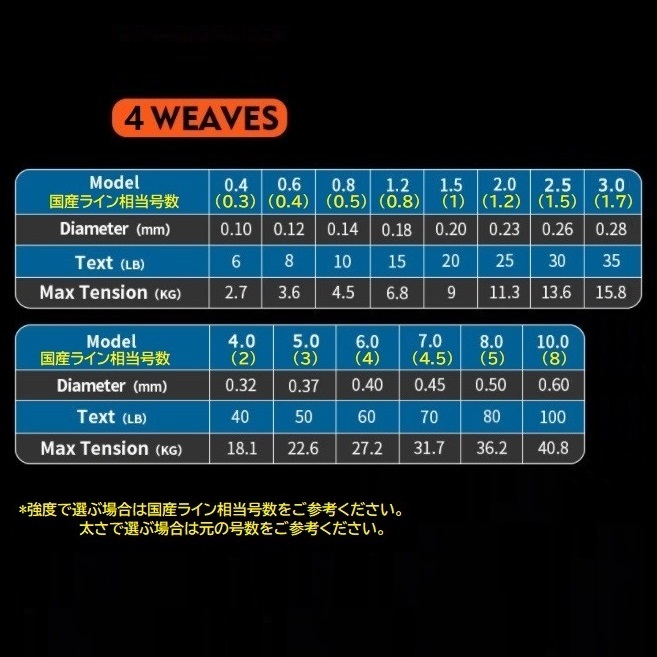 PEライン 4編み 300M 0.4号、強度6LB 2.7KG
