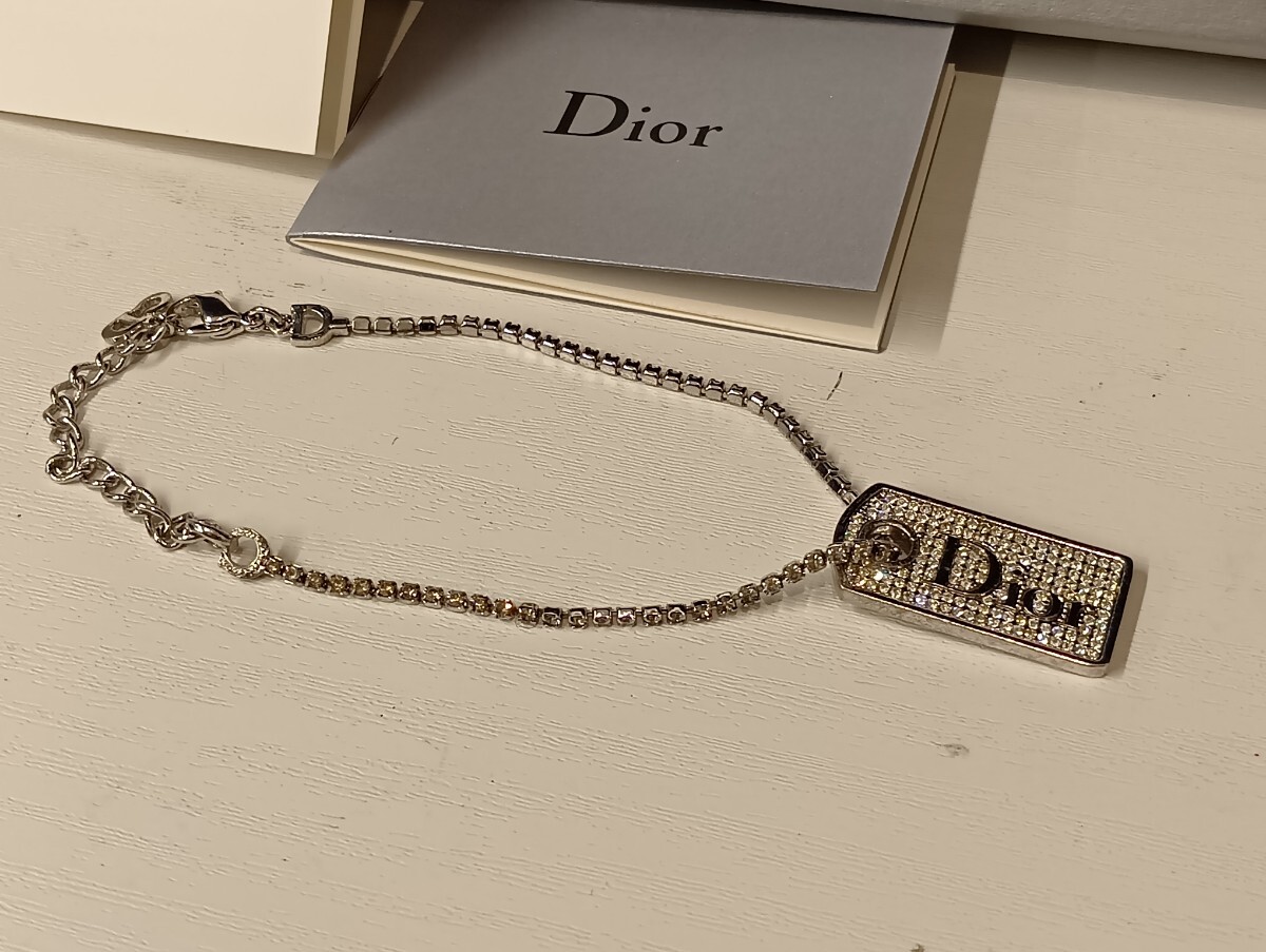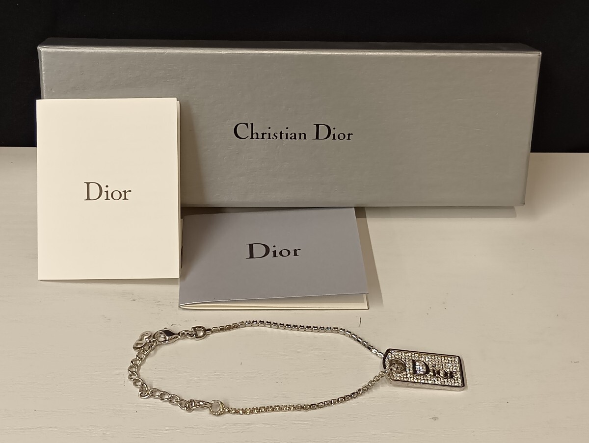 美品 Christian Dior クリスチャンディオール ラインストーン プレート ブレスレット 中古品 現状品になります。