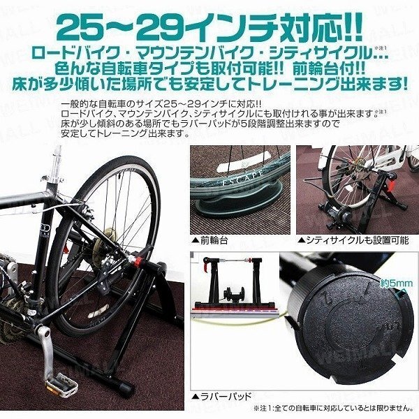 25インチ〜29インチのロードバイクやマウンテンバイクなど様々な自転車を使って屋内で簡単にトレーニングができます! 磁気抵抗(マグネット)のため簡単にお好みの負荷に調整することが可能です。 また音も三本ローラー台や遠心負荷よりも静かなことも特徴です。 前輪台やクイックリリースまでも付属しているので、すぐトレーニングできます。 【商品仕様】 サイズ(約):550mm×580mm×410mm 負荷方式:磁石式(マグネットユニット) 6段階負荷調整リモートダイヤル 対応タイヤ:25〜29インチ 本体重量(約):7kg (自転車 2台 室内 フック スタンド式 ディスプレイ 簡単設置 省スペース収納) |