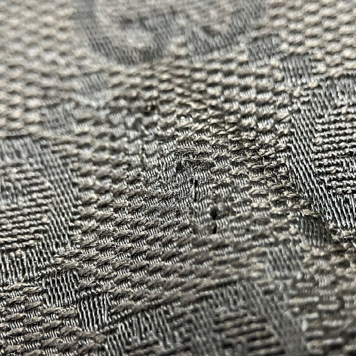 角スレ、穴あき、フラップ内側のキャンバスのスレ、金属プレート傷、毛羽立ち、革のヨレが見られます。