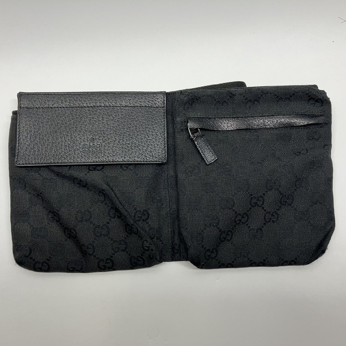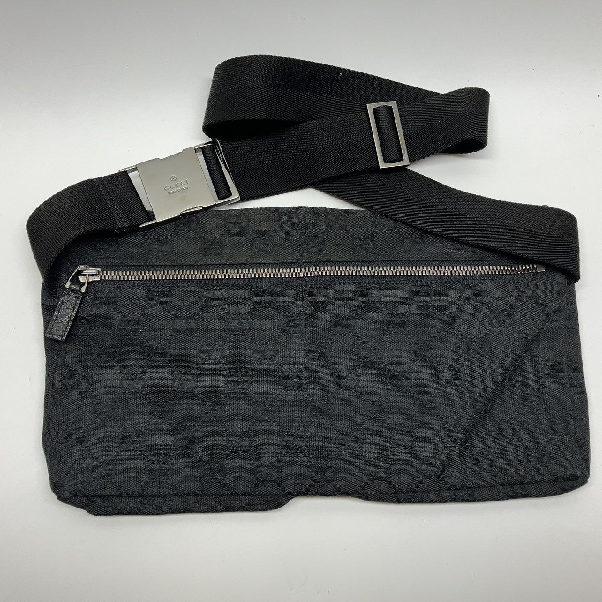 π【 GUCCI グッチ GGキャンバス ボディバッグ 28566 ブラック ウエストバッグ 002122 クロスボディ 斜め掛け レザー キャンバス 】KH14686