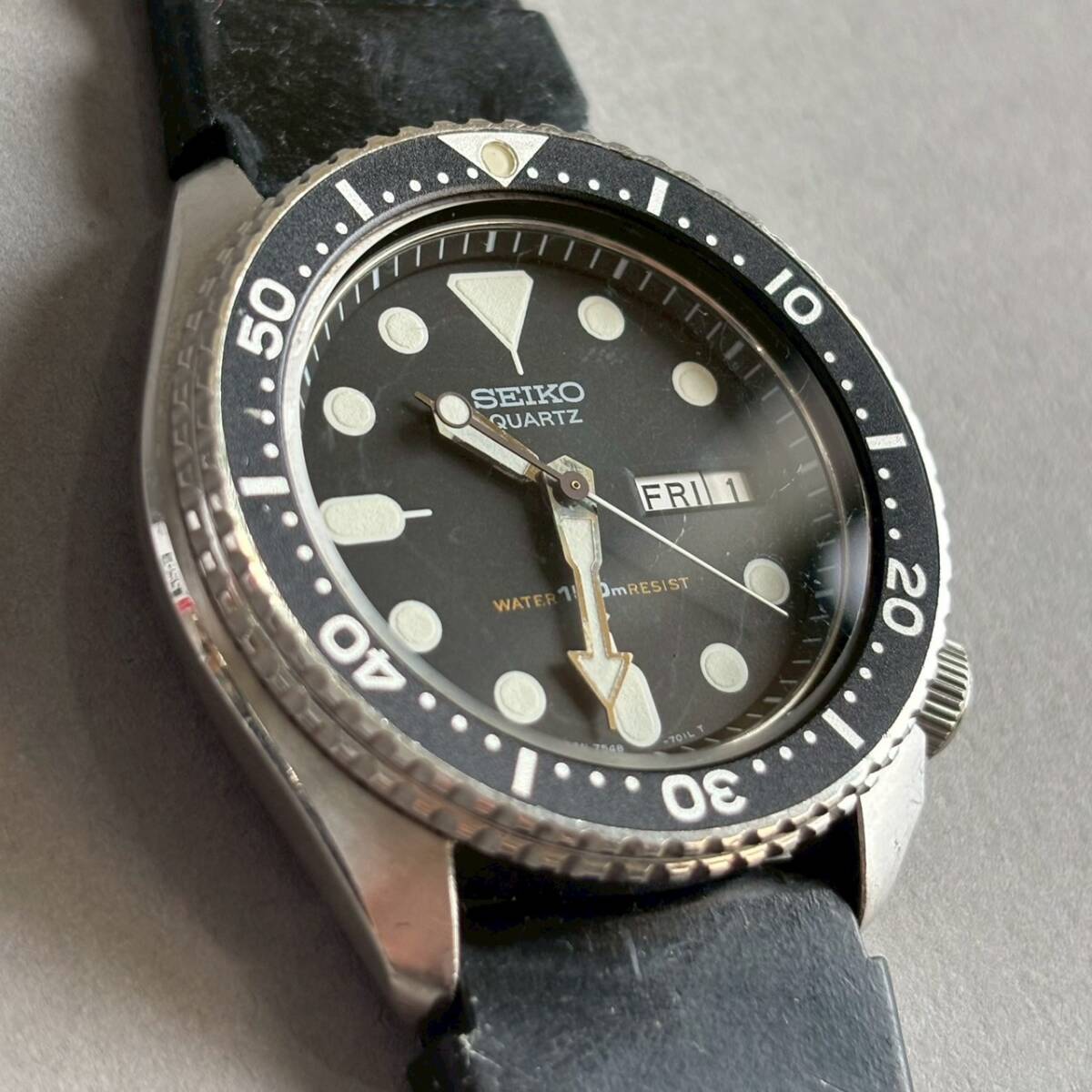 YM1272 動作未確認 SEIKO QUARTZ セイコー クォーツ ダイバーズウォッチ 150M防水 7548-7000 黒文字盤 デイデイト メンズ腕時計 ジャンク