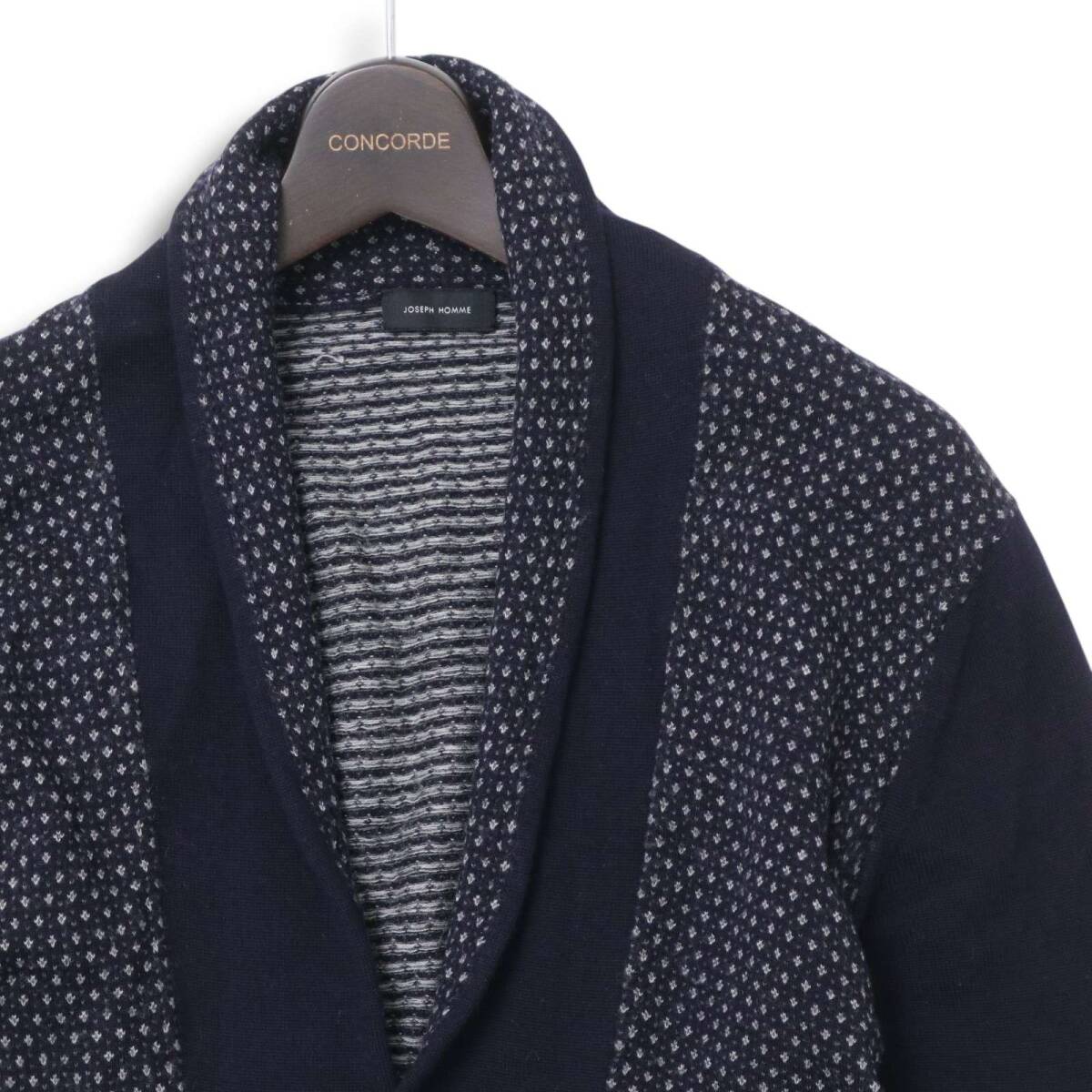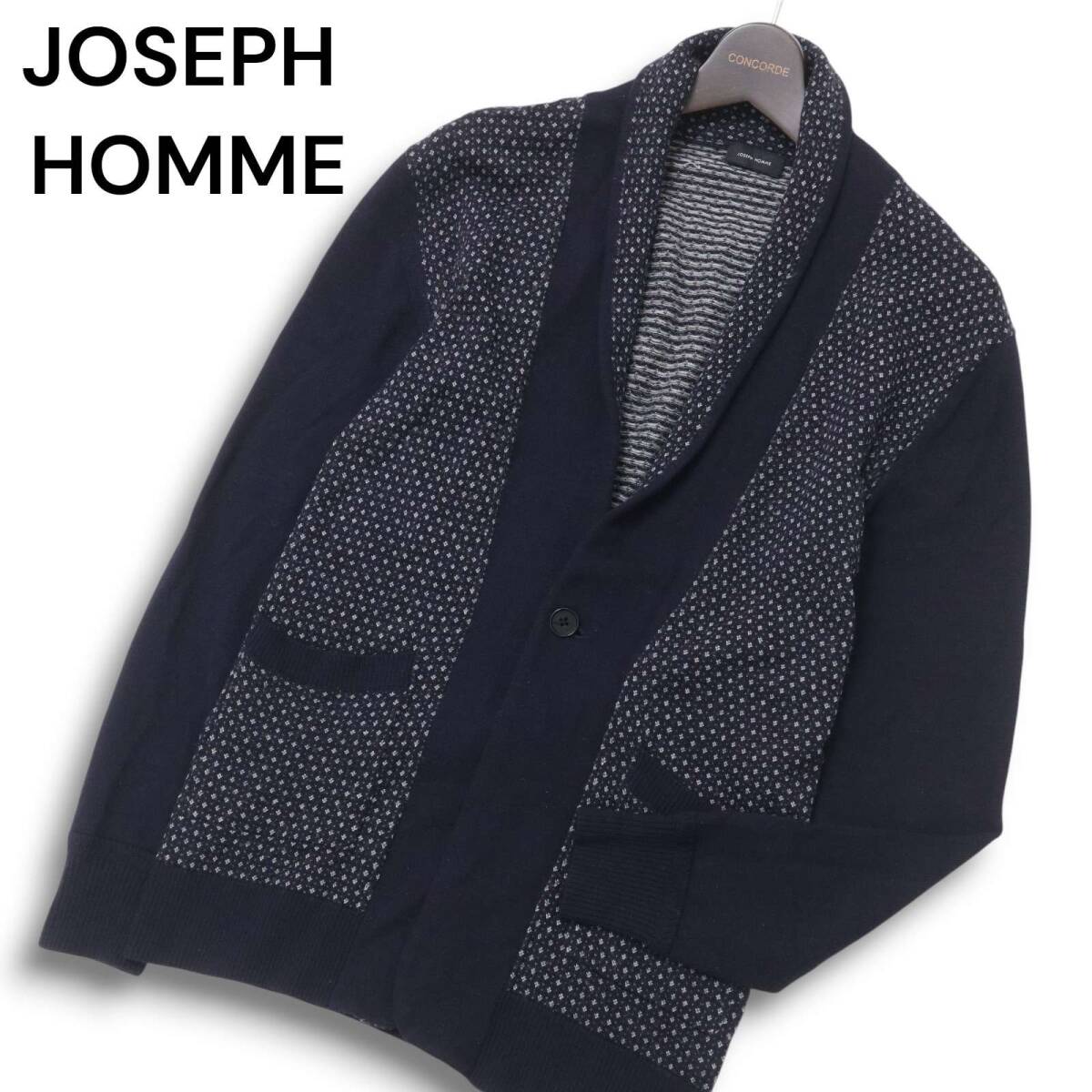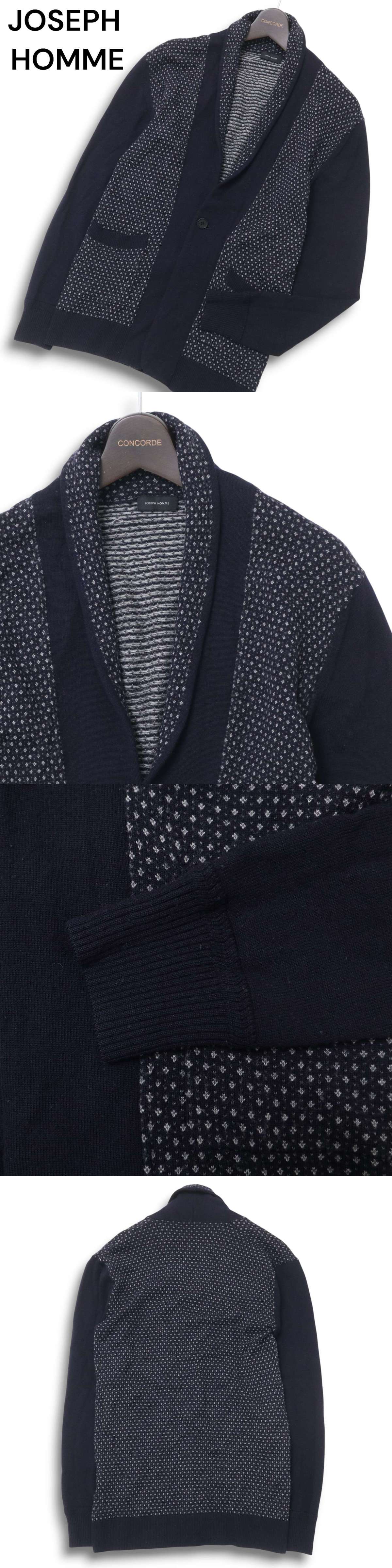 JOSEPH HOMME ジョセフ オム デザイン柄★ 切替 ウール100% ショールカラー ニット カーディガン Sz.46 メンズ ネイビー