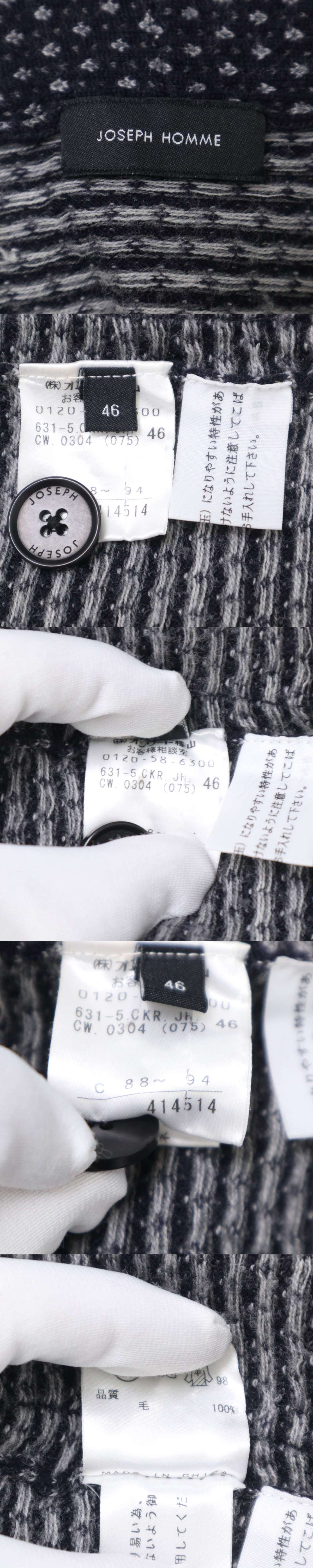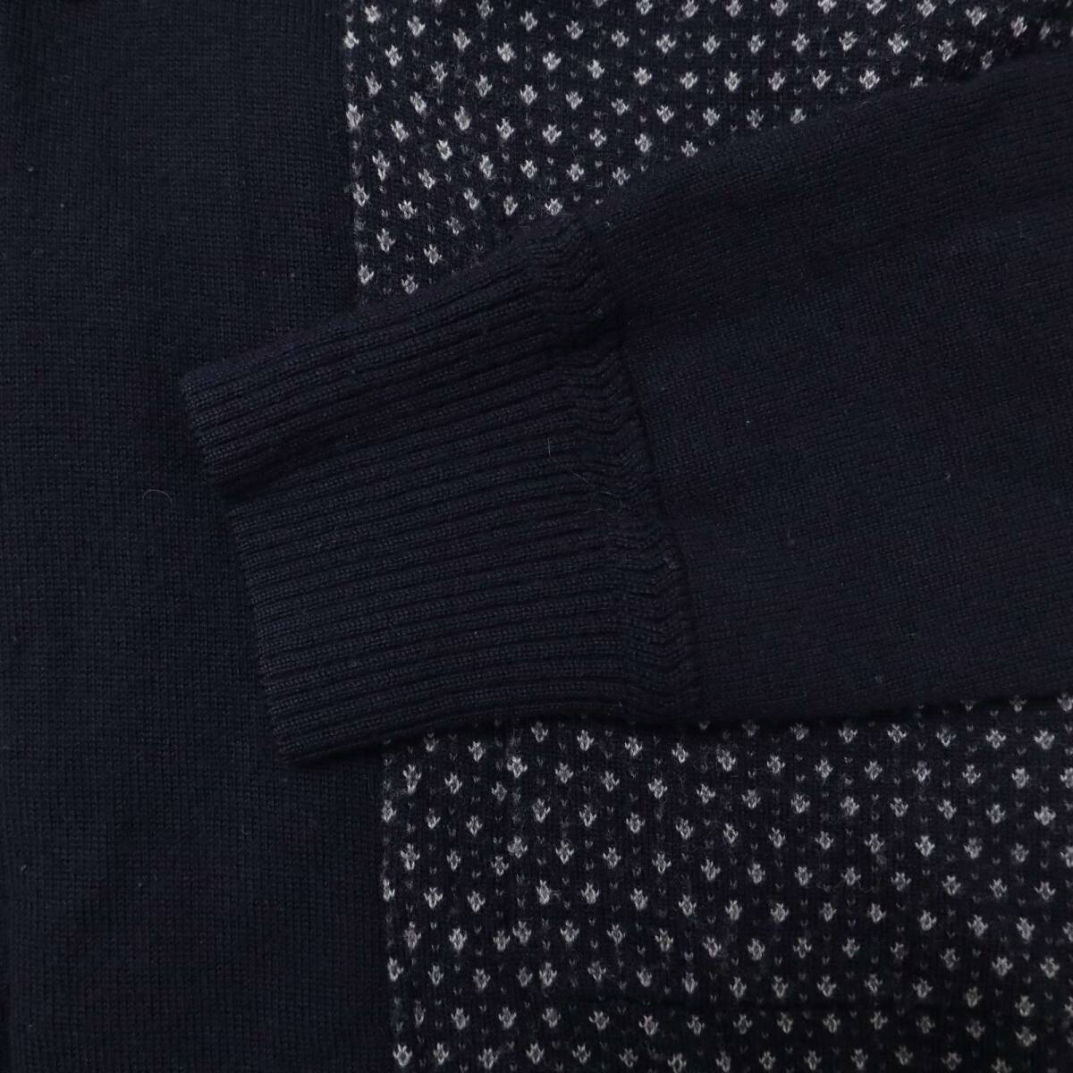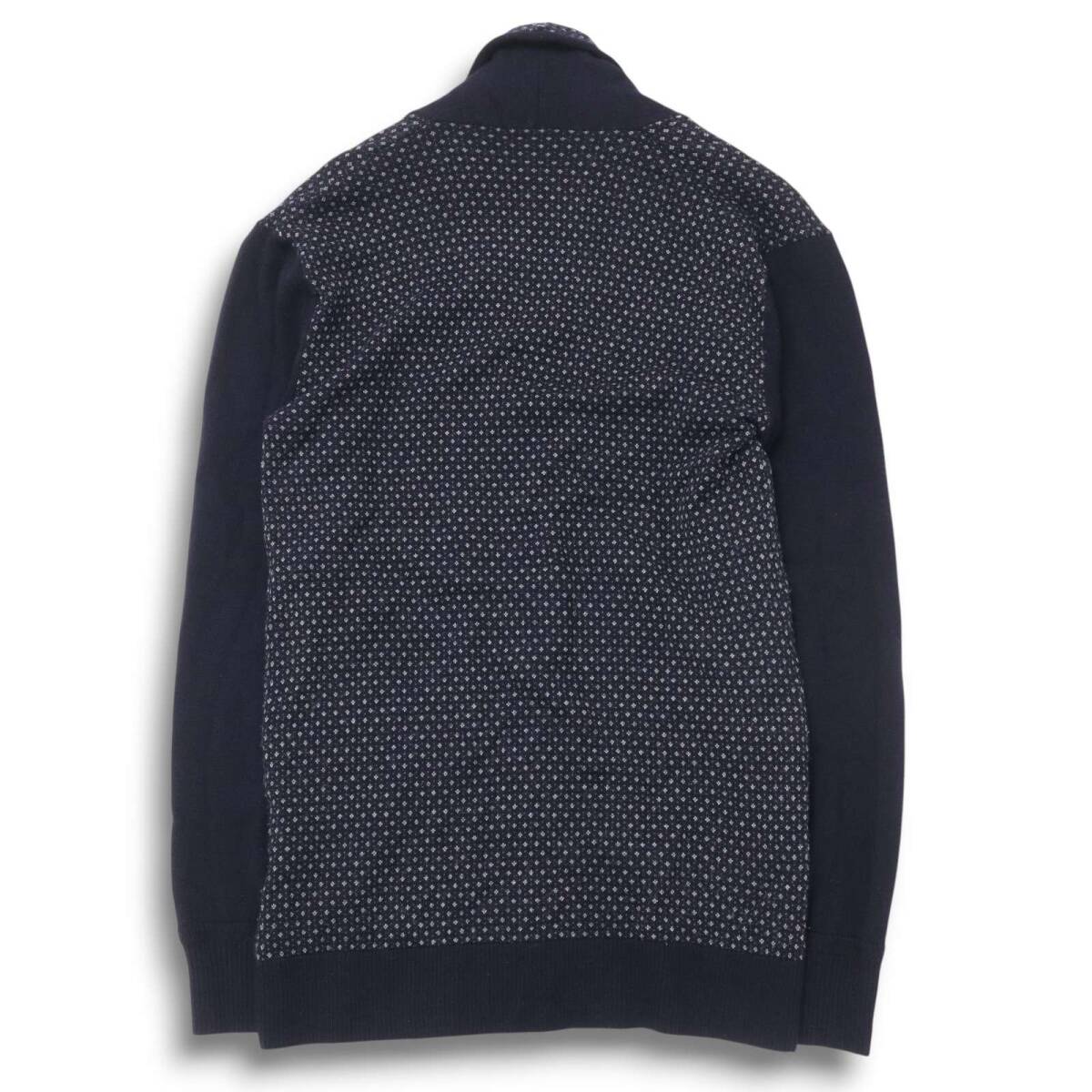 JOSEPH HOMME ジョセフ オム デザイン柄★ 切替 ウール100% ショールカラー ニット カーディガン Sz.46 メンズ ネイビー