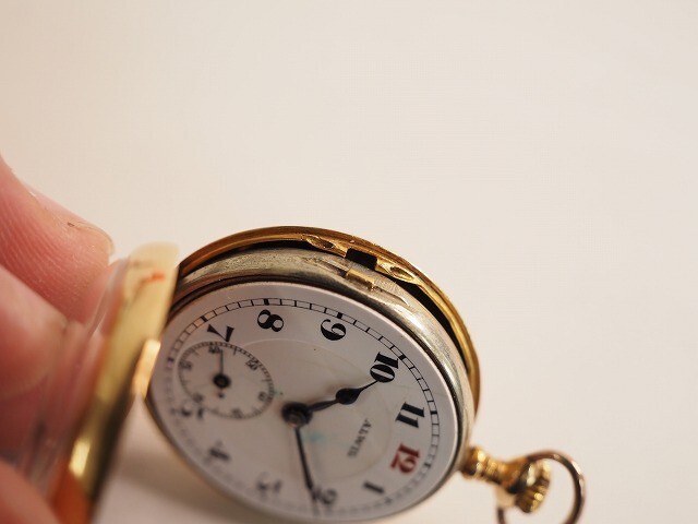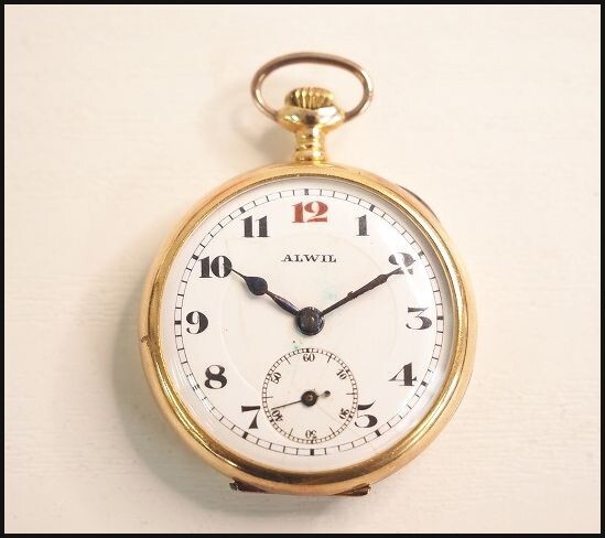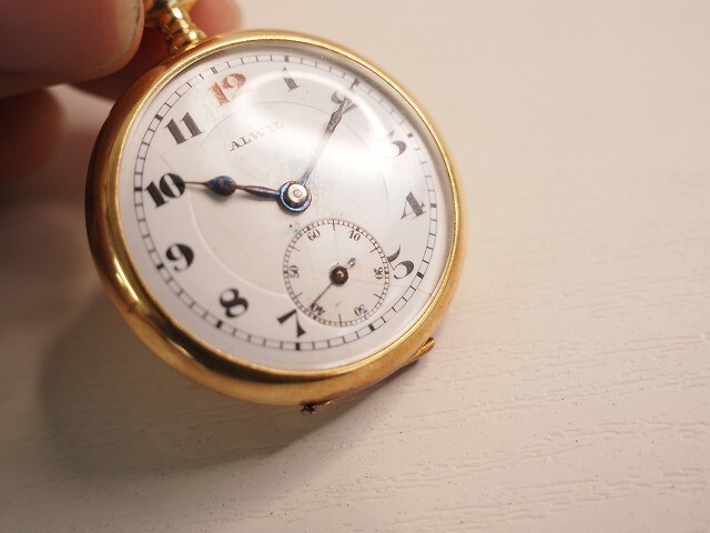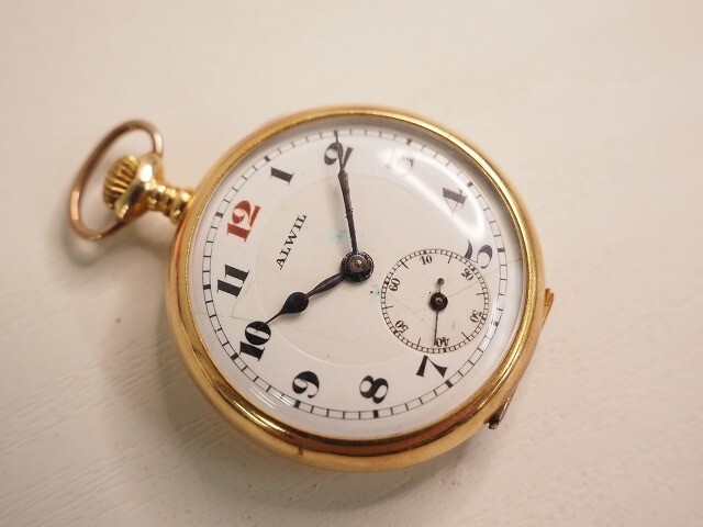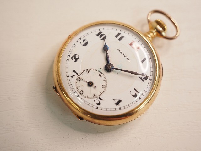 ALWIL 18K刻印 重量約27.0g アンティーク 手巻き懐中時計 1129b