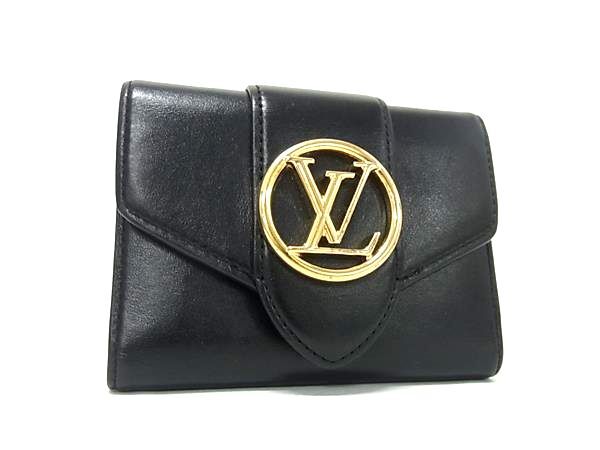 1円 ■美品■ LOUIS VUITTON ルイヴィトン M69175 ポルトフォイユ LV ポンヌフ コンパクト 三つ折り 財布 ウォレット ブラック系 FU2623