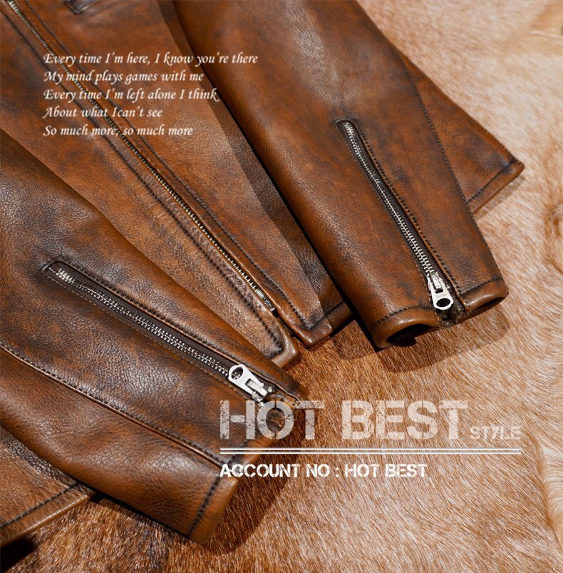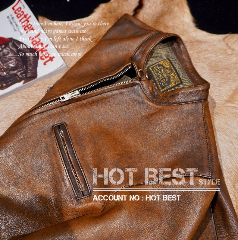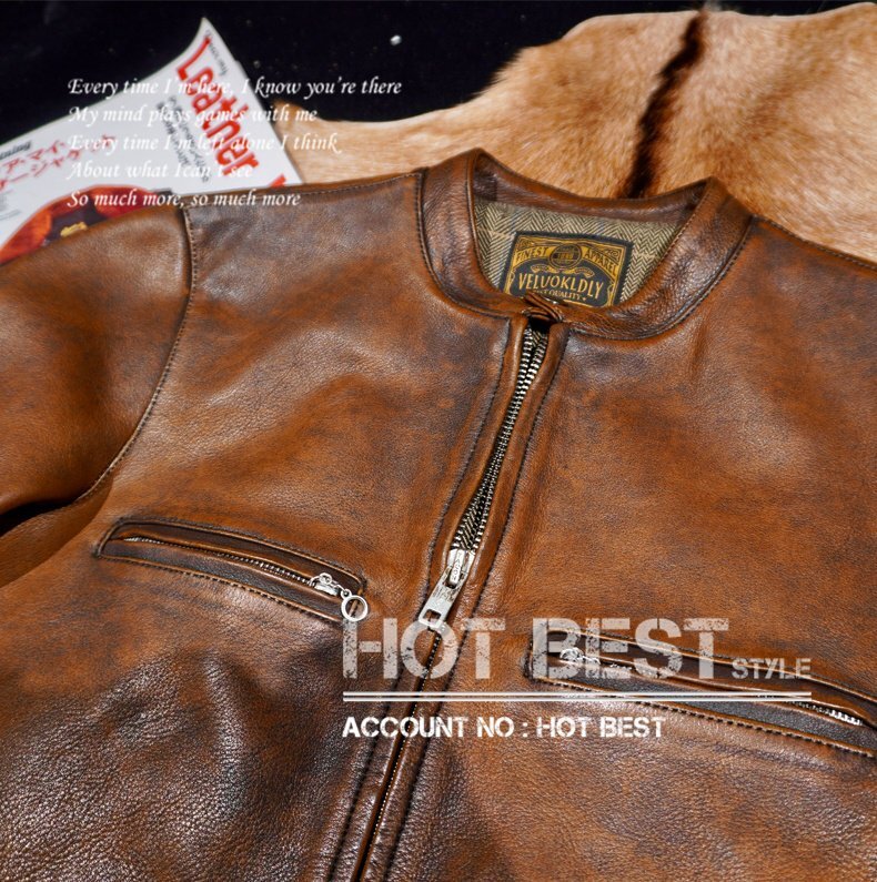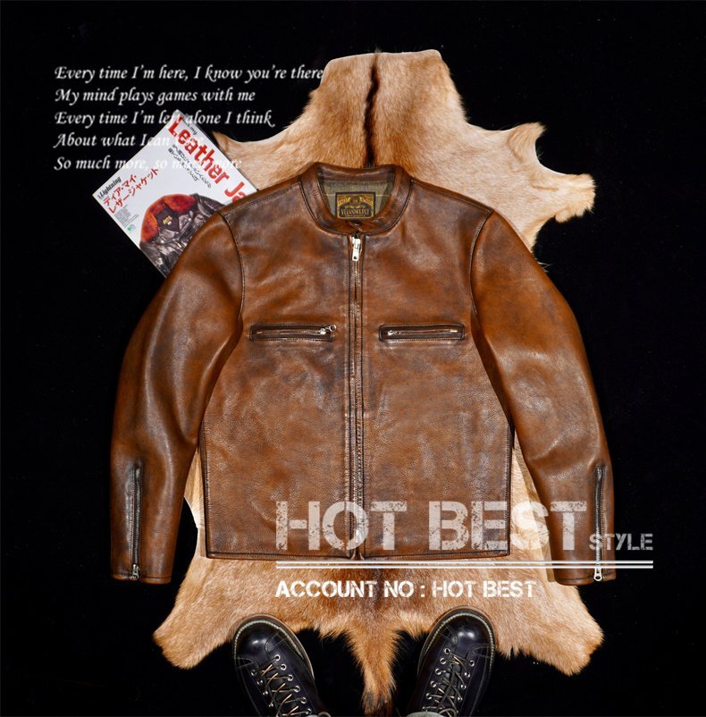 1.3mm カウハイド 60's カフェレーサー シングルライダース ウォッシュ加工 ヴィンテージ レザージャケット 植物鞣し 牛革 Y1437/L~3XLサイ