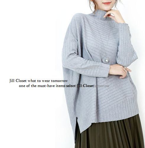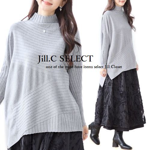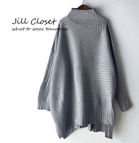 新品【送料185円】伸縮◎リブ×スムース切替えdesign*もちもちハイゲージニット♪アシメントリーデザイン*プルオーバーチュニック777.GRAY
