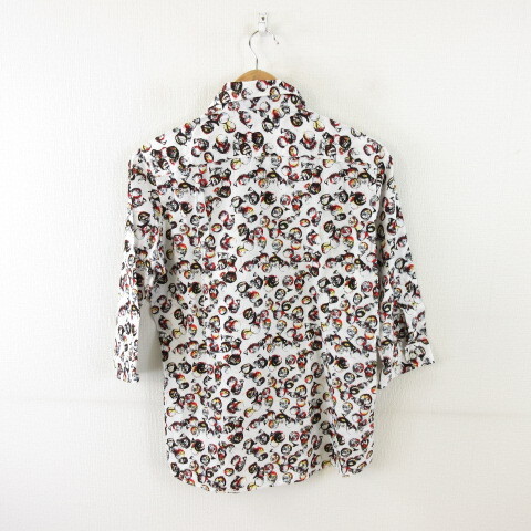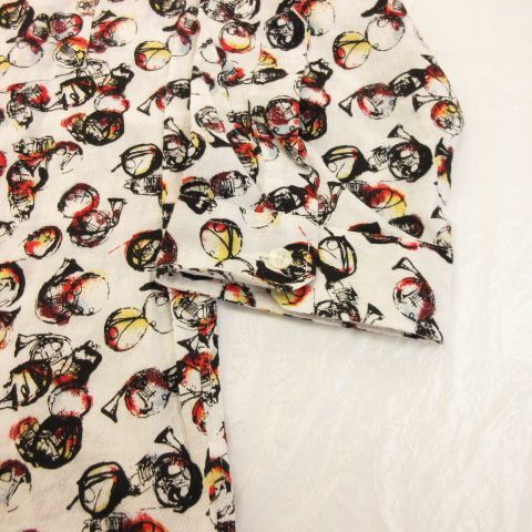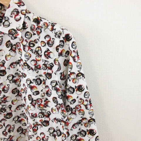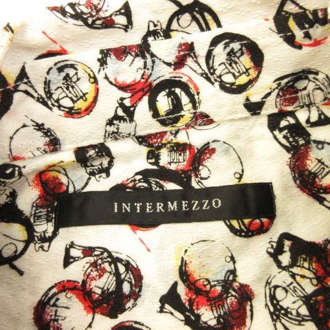 インターメッツォ INTERMEZZO シャツ 総柄 七分袖 白 黒 M *A190 メンズ