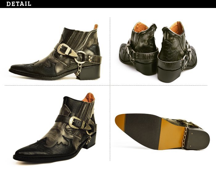 メンズ ウエスタンブーツ 脚長 ヒールアップ サイドゴア サイドジッパー ヘビ柄 パイソン バックル リングブーツ 男 靴 ze6001