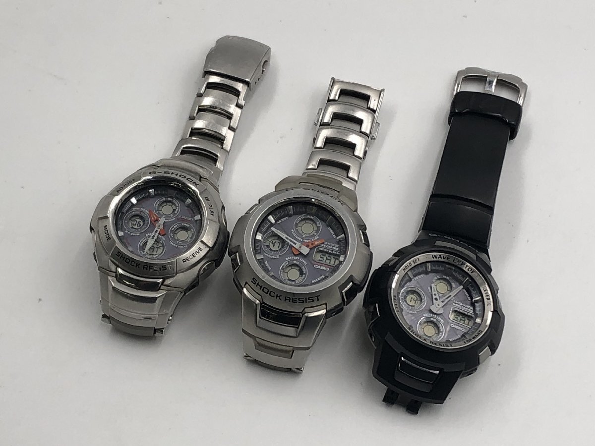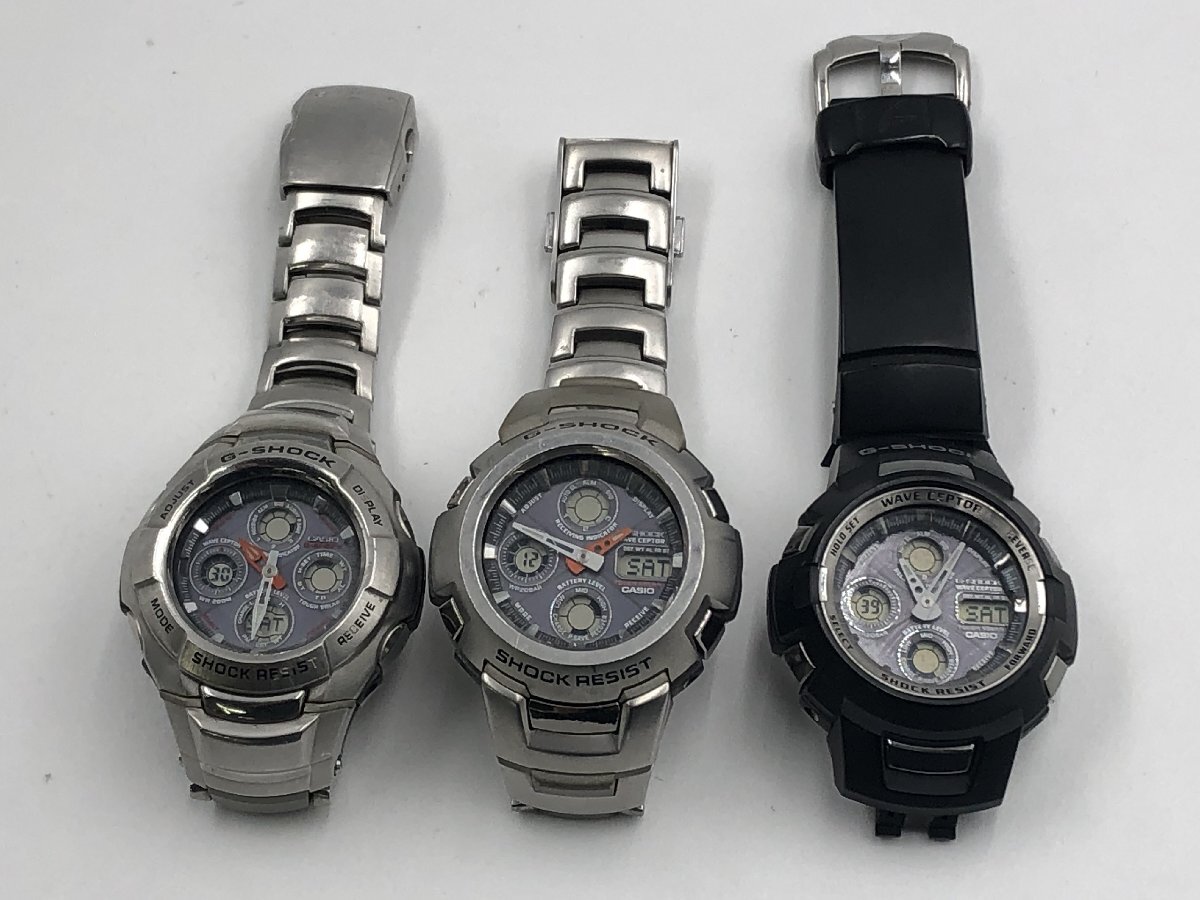 ■ ♪▲【CASIO】G-SHOCK THE G他 ネイビー文字盤色 ソーラー式 腕時計 稼働品 3点セット GW-1000DJ/GW-1100J/GW-1200E まとめ売り 1003 15 ■ |