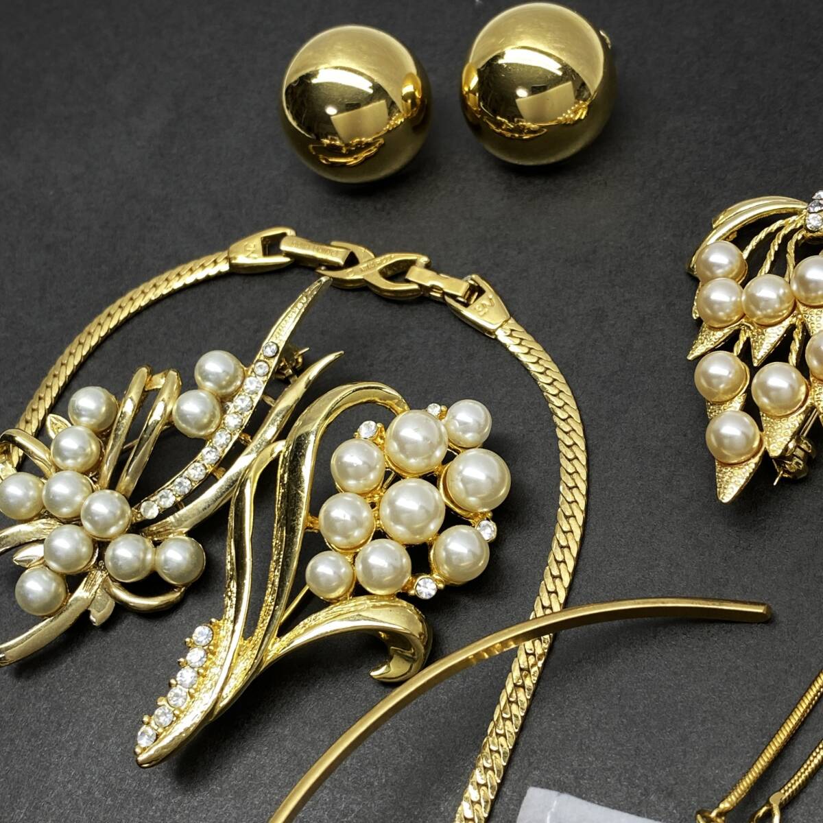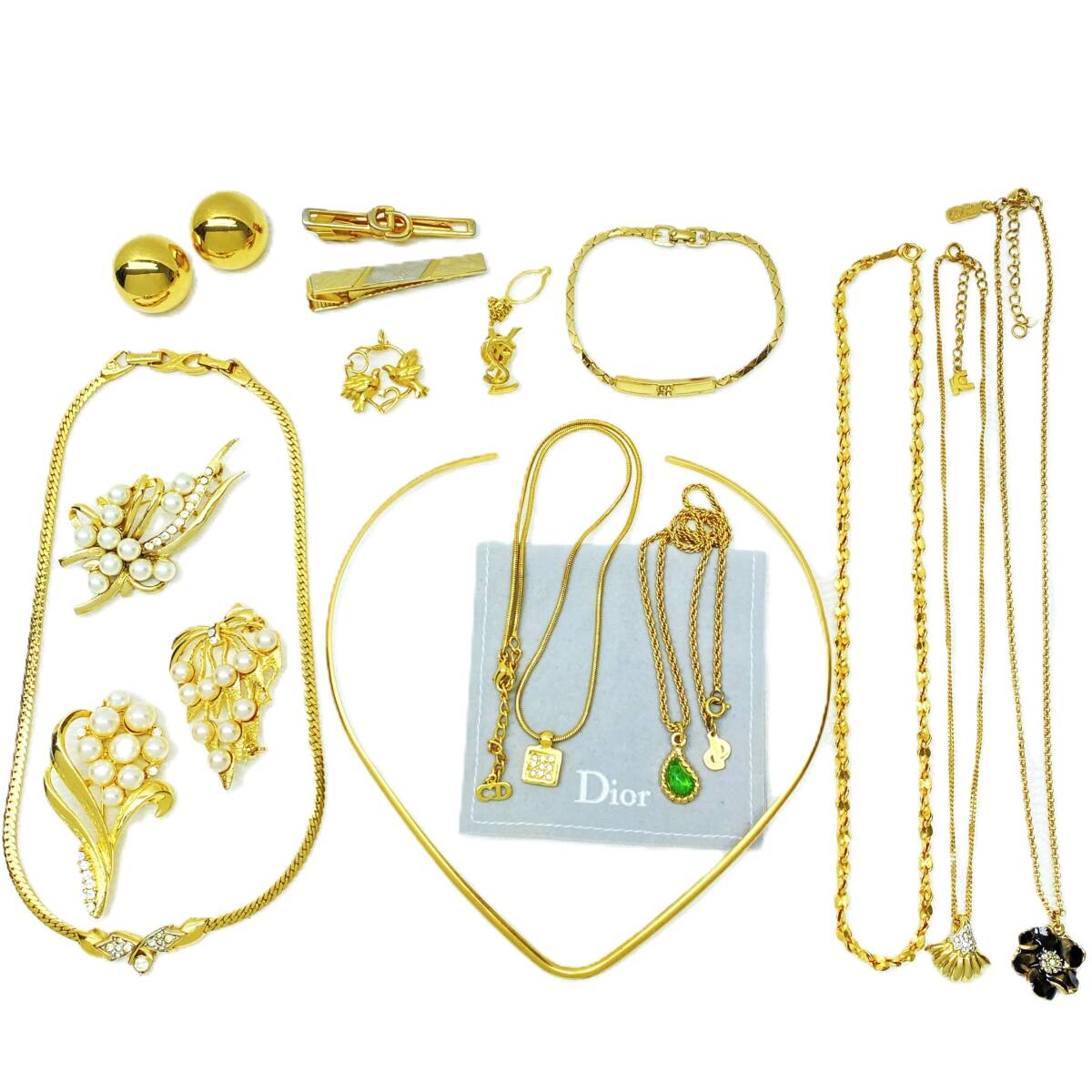 ブランドアクセサリー ゴールドアクセサリー まとめてセット イヤリング / ネックレス / ブレスレット / ブローチ ペンダントトップ / タイピン / タイタック 等 NINA RICCI / ChristianDior / Ferragamo pierre cardin / K18GF / K18GP 等の刻印入ってます。 画像の16点セットです。 多少のスレ汚れ等あります。ご確認ください。 |