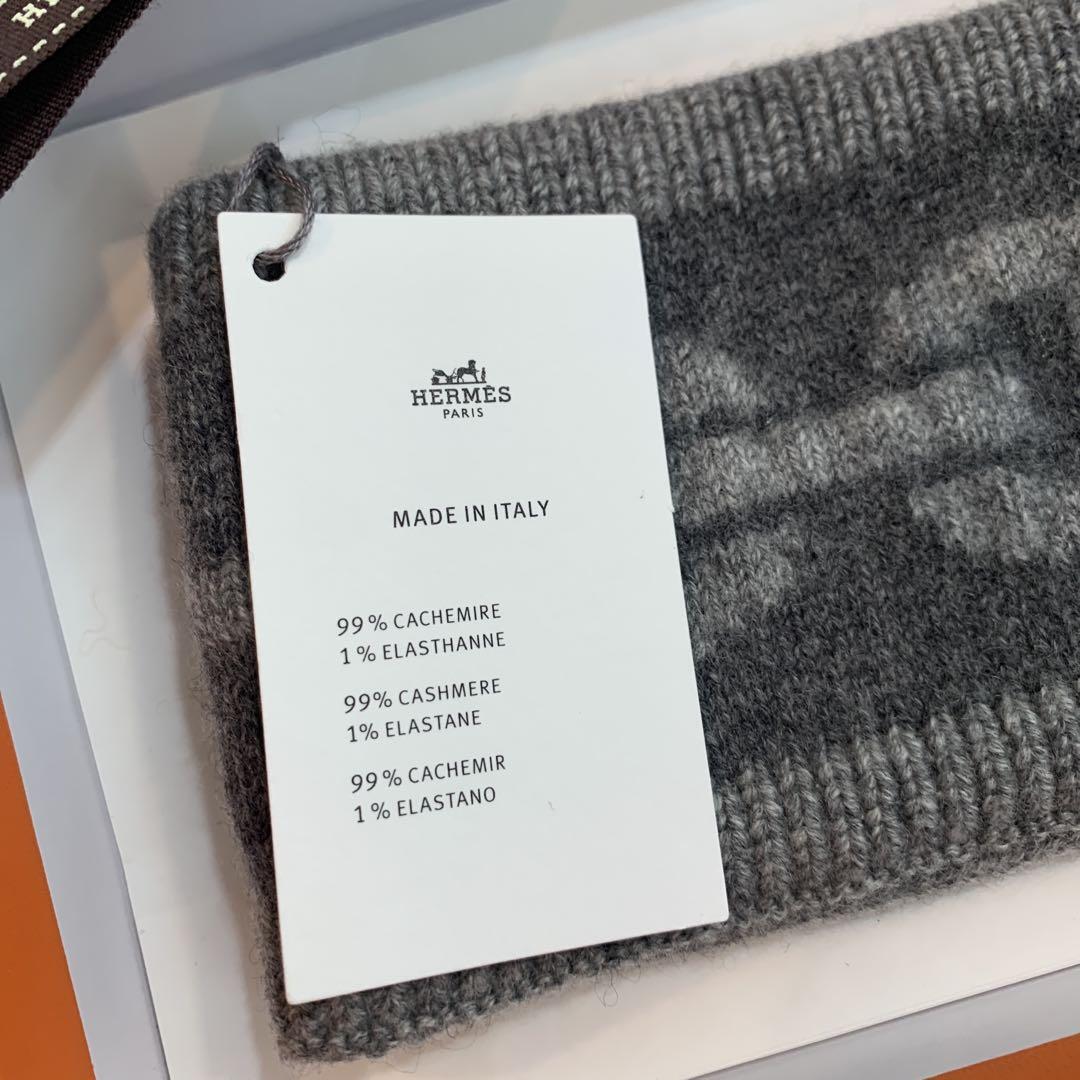 HERMES エルメス ヘアバンド オネスティ シェーヌダンクル カシミヤ カシミア グレー シャルボン/フランネル ヘアアクセサリー イタリア製 made in Italy レディース ユニセックス