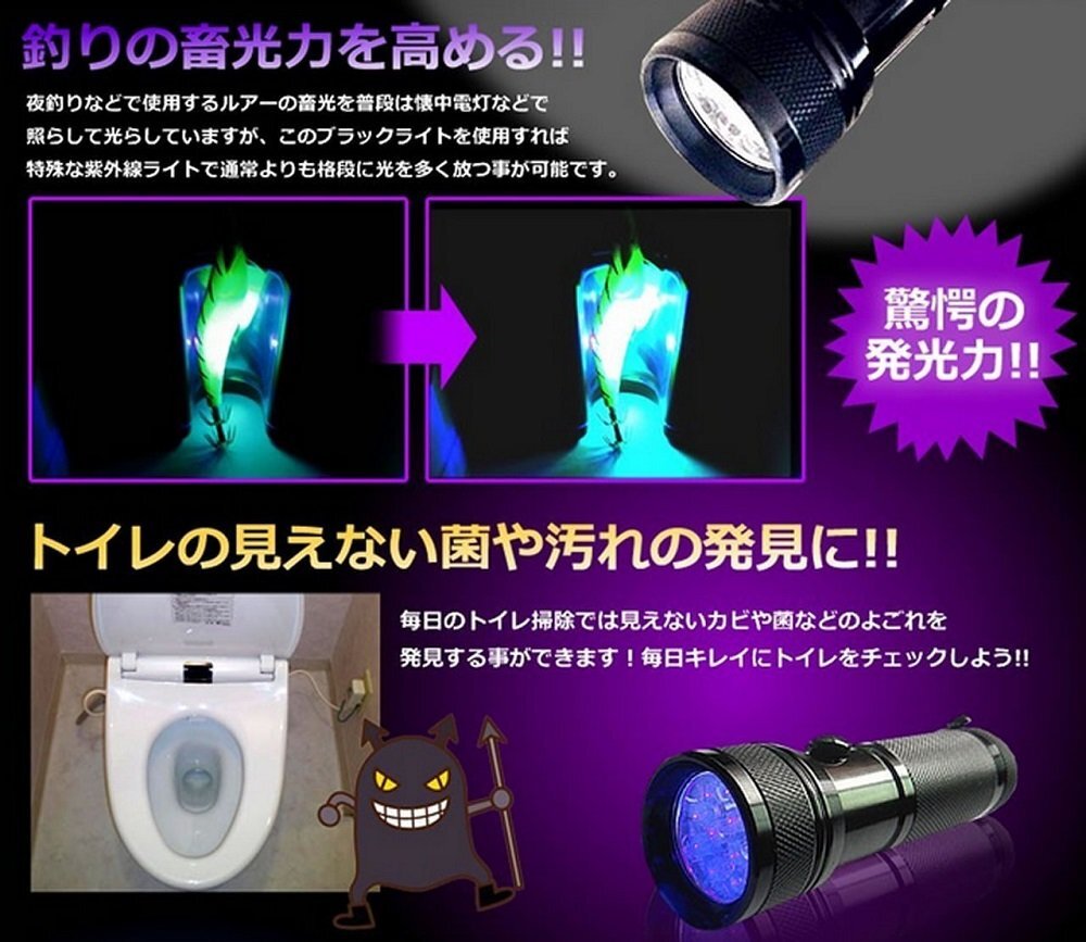 LEDブラックライトは様々な分野で活躍しています。 ※仕様やデザインは予告なく変更される場合があります。 |