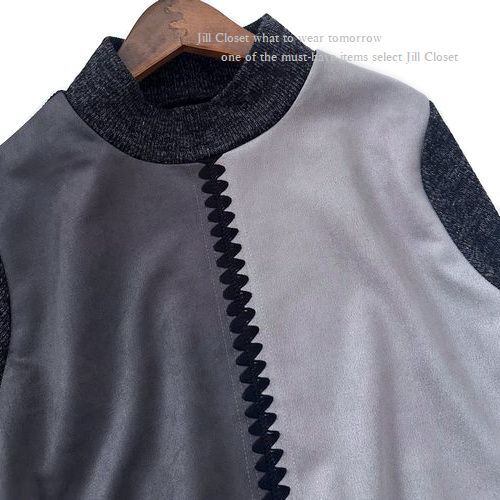 新品【送料185円】伸縮◎フロント刺繍*フェイクスエード×綺麗仕立てのニットソー*異素材切り替え*プルオーバー*チュニック7507.CCLG