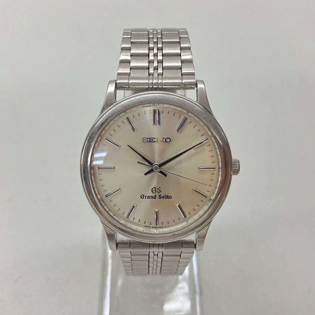 取り扱っている商品は未使用・未開封も含め、全て一度は人の手に渡った一点ものの中古・ジャンク扱いでの商品です。 当方素人ですので肉眼で確認できる簡易的な検品、採寸、および簡易梱包となります。 ※稼働の記載につきましては秒針等の確認のみとなり、全体の動作を保証するものではございません。 また、出品時の中古品の動作状況となりますので、予めご了承の上でご入札ください。 不動の表記につきましてはクォーツ式のムーブメントの場合、動作未確認の状態となります。 電池交換後、不具合があった場合でも返金、返品の対象とはなりませんので、予めご了承くださいますようお願い致します。 細かな日差、オーバーホール状況、社外パーツの使用に関しては保証しかねますので、ご理解いただけた上でのご入札をお願い致します。 上記を踏まえた上で中古品、ジャンク商品として出品させていただいておりますので、全てご理解いただけた上でのご入札をお願いいたします ------------------------------------------------------------------------- 【メーカー】 SEIKO 【モデル名】 GRAND SEIKO 【型番】 8J55-0A10 【シリアル】 9D0198 【サイズ】 直径約3.4cm 腕回り約17cm 【付属品】 画像参照 【稼働状態】 稼働 【その他状態】 リューズ動作 時間:OK 日付:- 曜日:- ------------------------------------------------------------------------- 画像にあるものが全てです。 他詳細は画像にてご判断ください。 ※目立つ傷や汚れを中心に写真を撮っておりますが、画像に写りきっていない傷等がある場合もございます。予めご了承ください。 ※商品を多数出品している関係で、稀に商品説明や画像に誤りがある場合がございます。予めご了承ください。 こちらのページをご覧いただく際は、商品説明文と掲載している画像の全てを確認いただいた上でご入札ください。 | |||||||