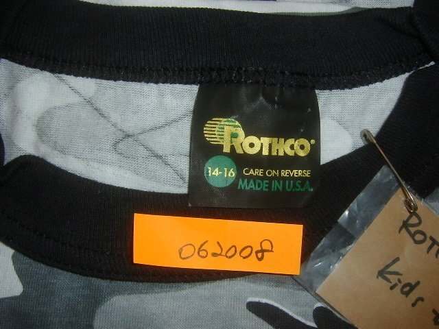 メイドインUSのロスコキッズTシャツ。 素材はコットン100%で着心地良しです。サイズ表記は14/16で着丈が58センチ、胸囲が70センチ程度、肩幅33cm、袖13cmです。日本人女性ちょい小さ目サイズぐらいに相当するかと思います。クロネコネコポス便200円でお送りいたします、落札価格にプラスでお願いいたします。
