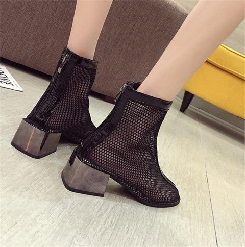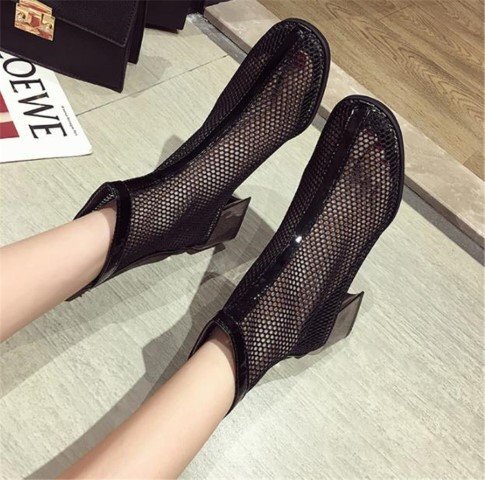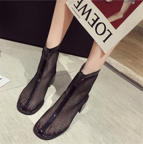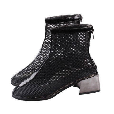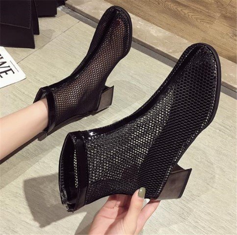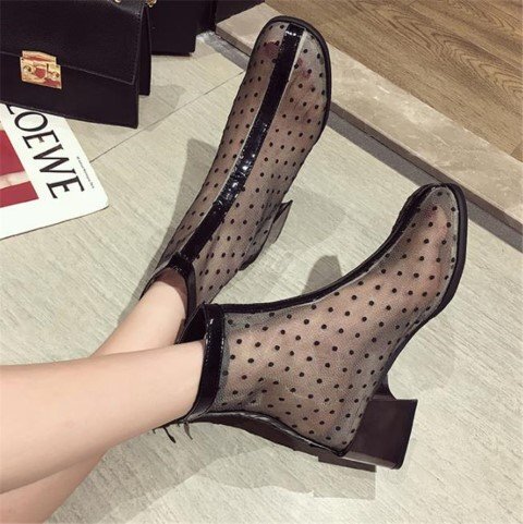 マーティンブーツ 透かし彫り 太いヒール ショートブーツ 39 ブラックドット
