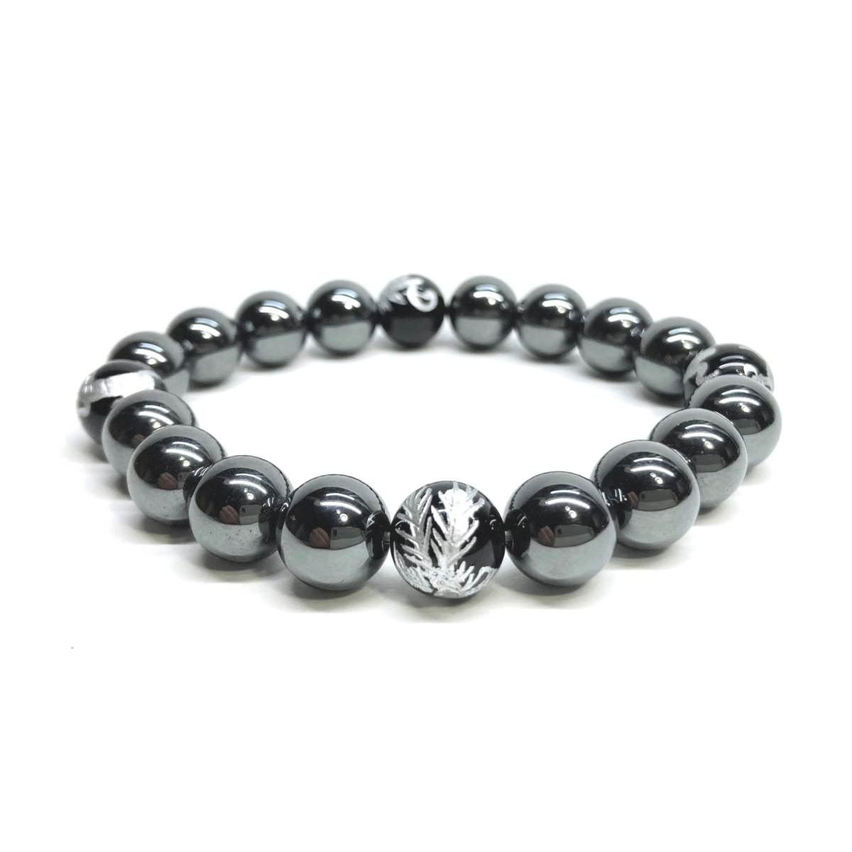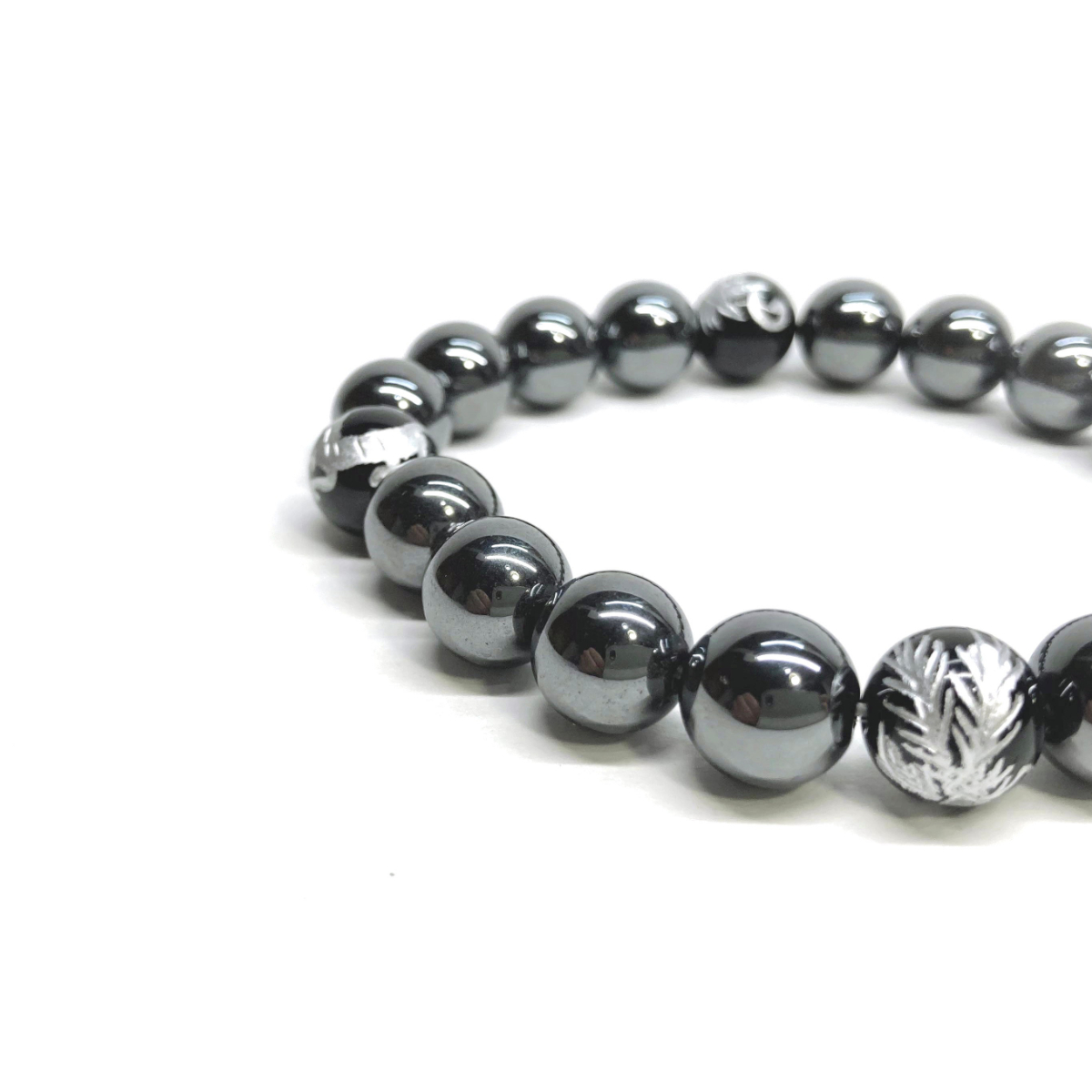 10mm 四神獣銀彫オニキス×ヘマタイト パワーストーン ブレスレット天然石 運気上昇 開運 金運 恋愛運 青龍 白虎 玄武 朱雀 ☆