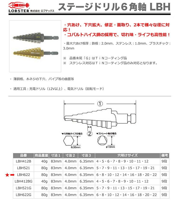 LOBSTER(エビ印) ステージドリル LBH622