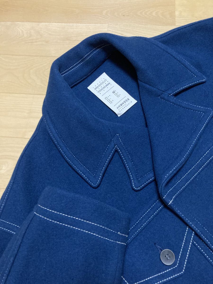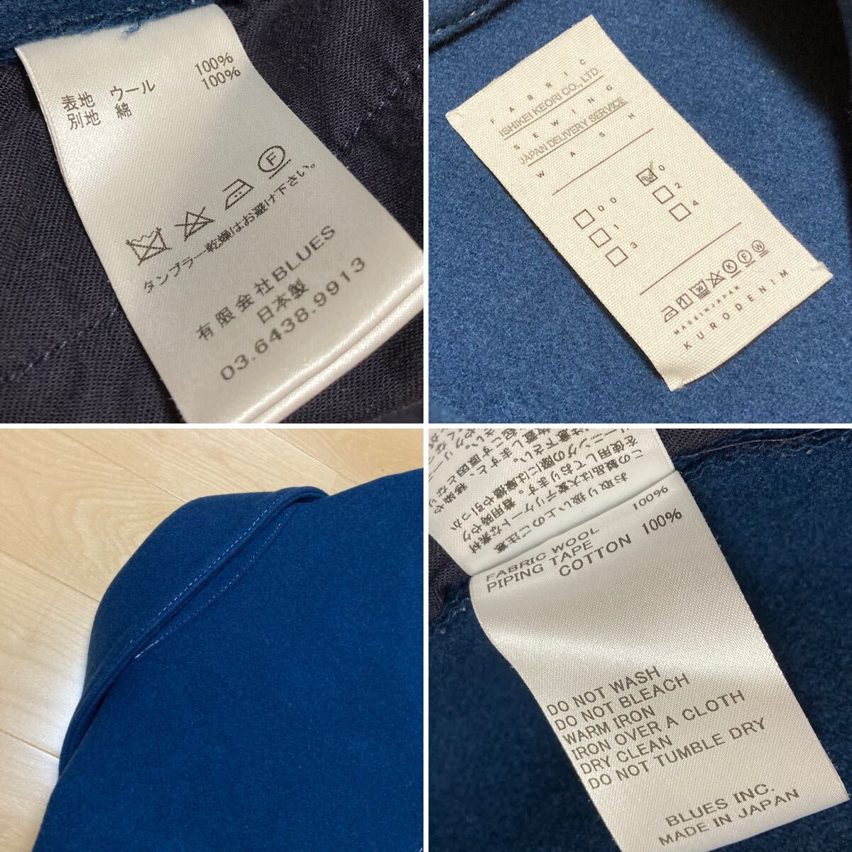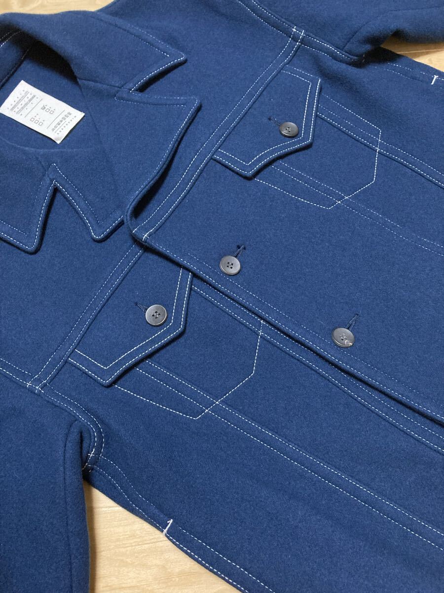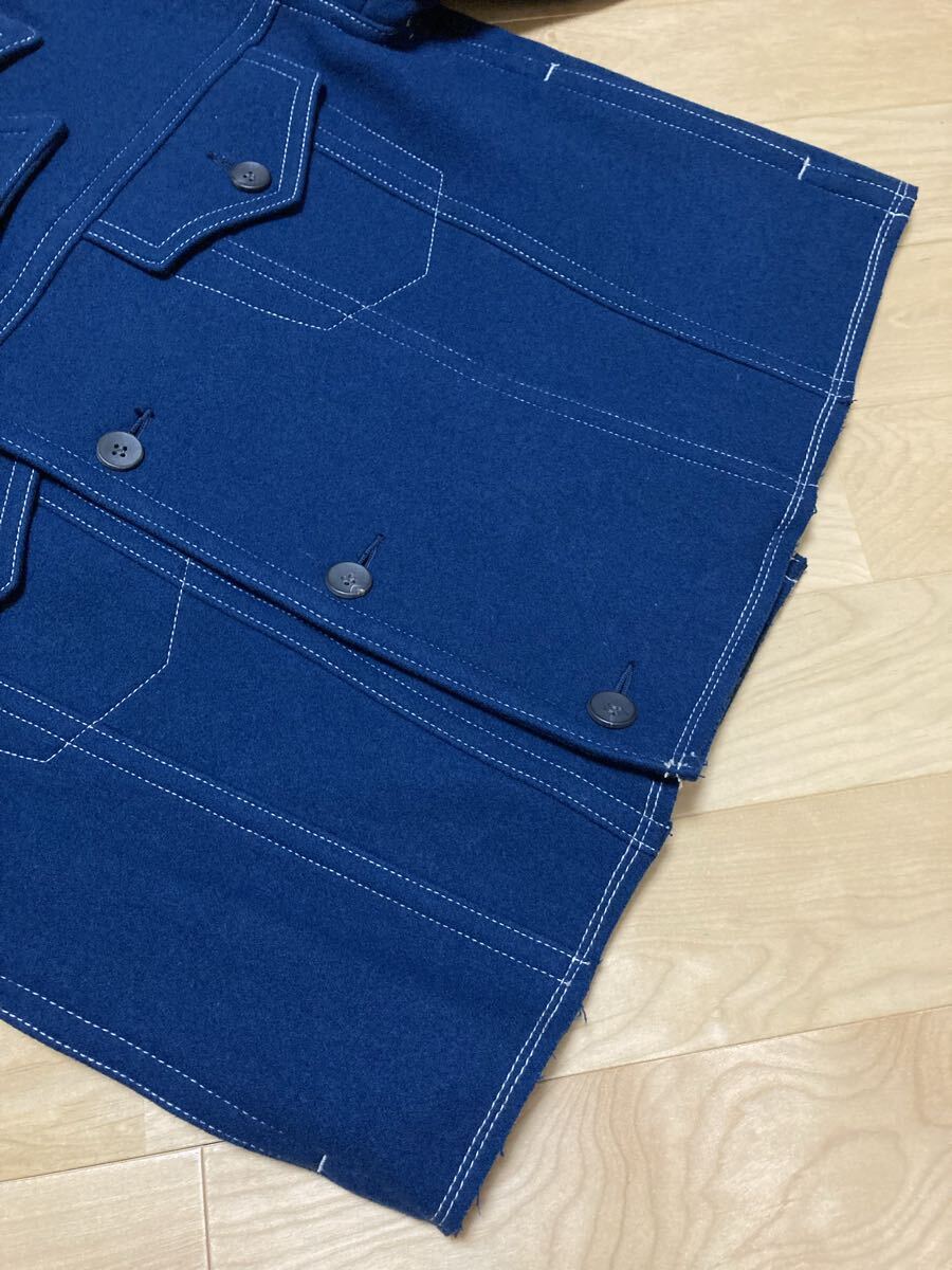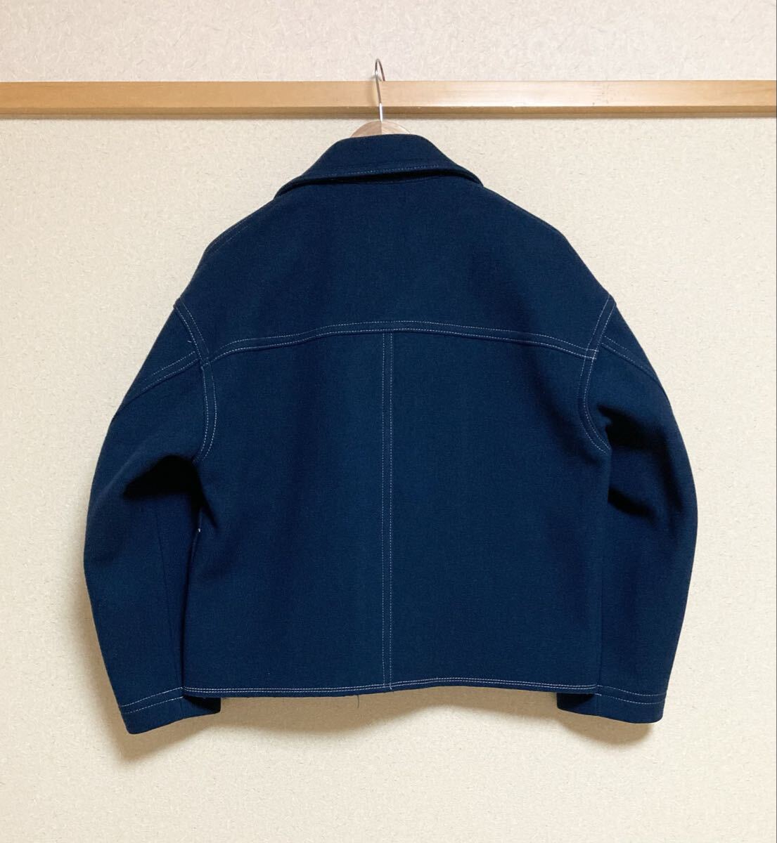 美品☆[KURO] 19AW 定価69,300 Melton Color Stitching Jacket ウールメルトン ステッチジャケット 0 ブルー 日本製 クロ