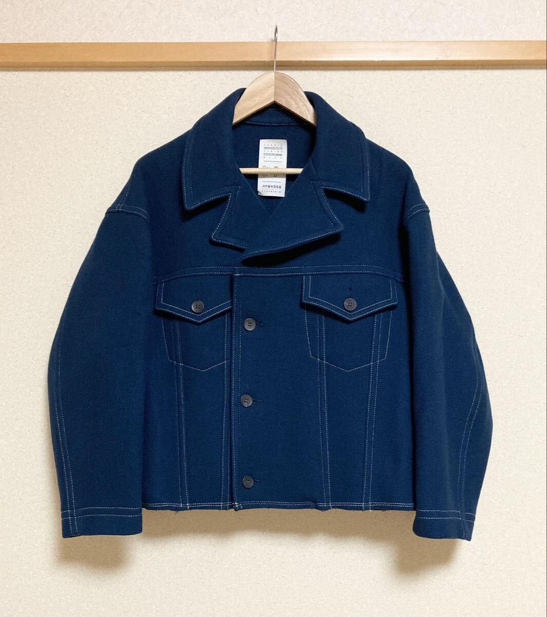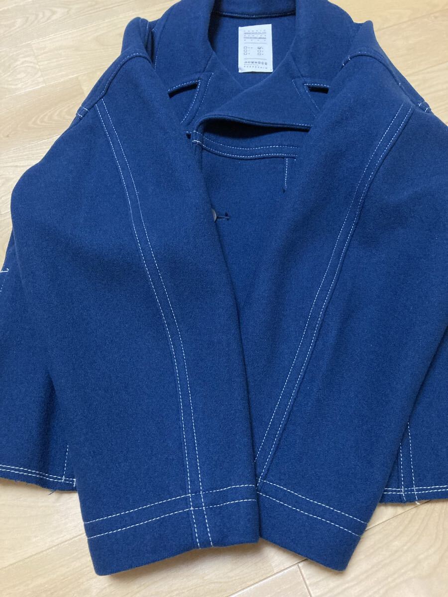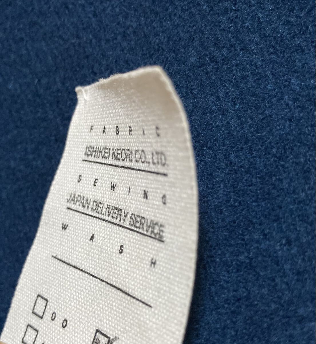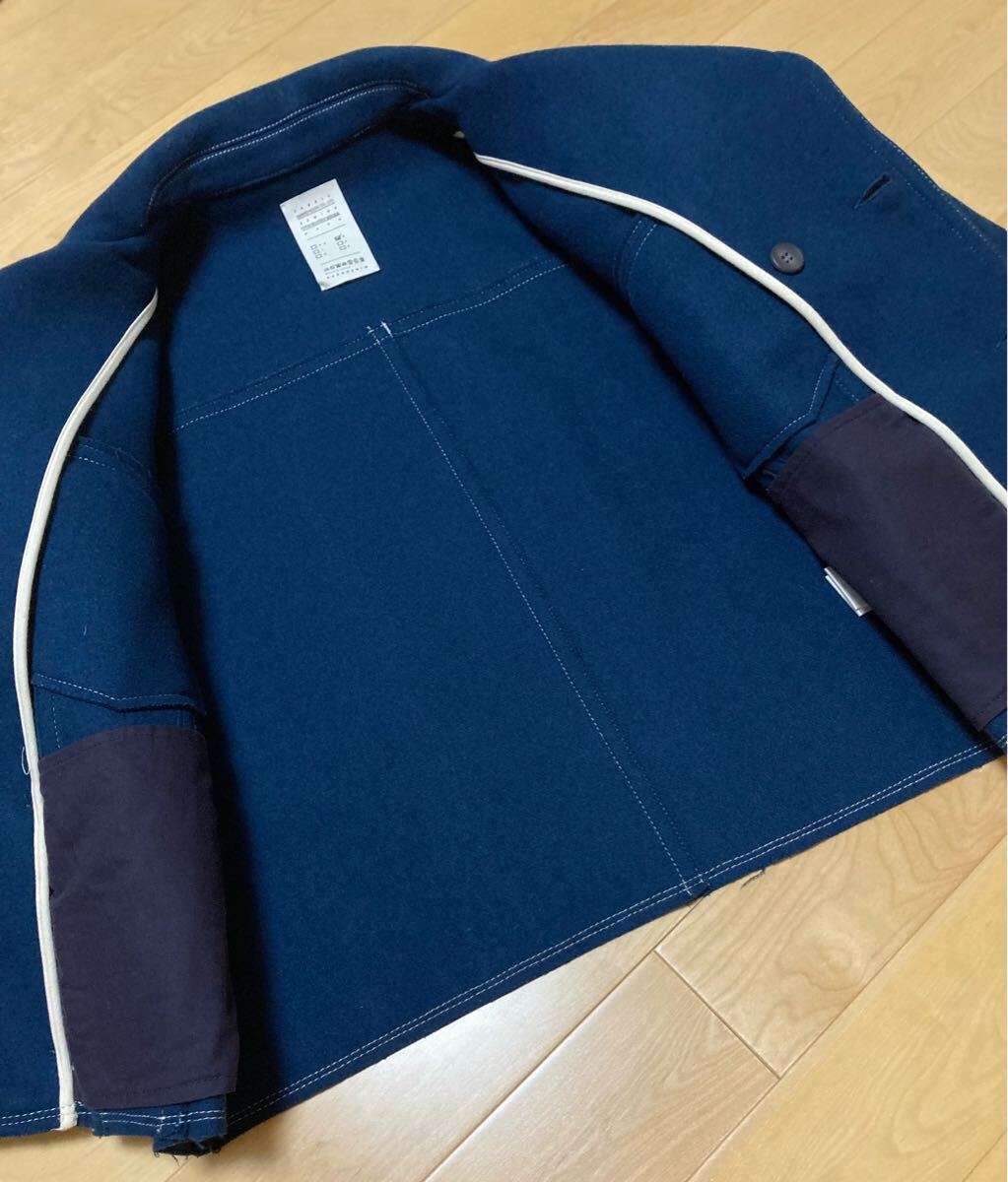 美品☆[KURO] 19AW 定価69,300 Melton Color Stitching Jacket ウールメルトン ステッチジャケット 0 ブルー 日本製 クロ
