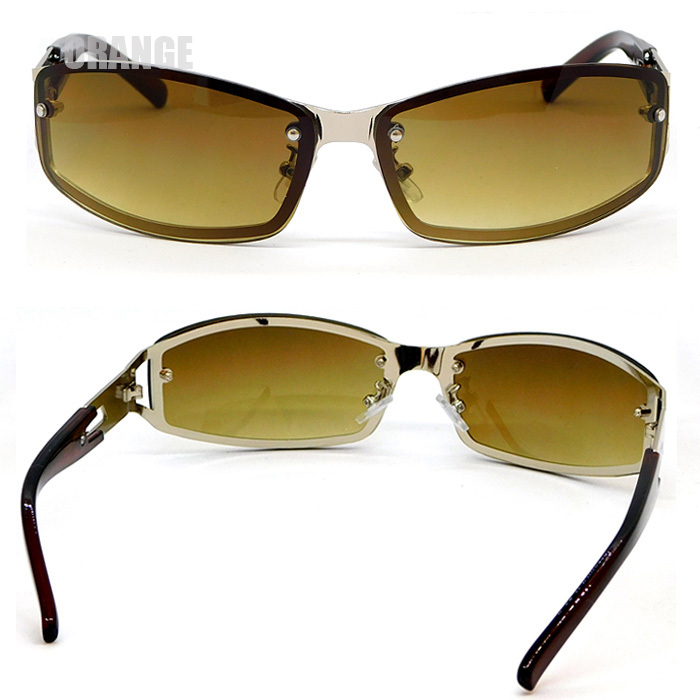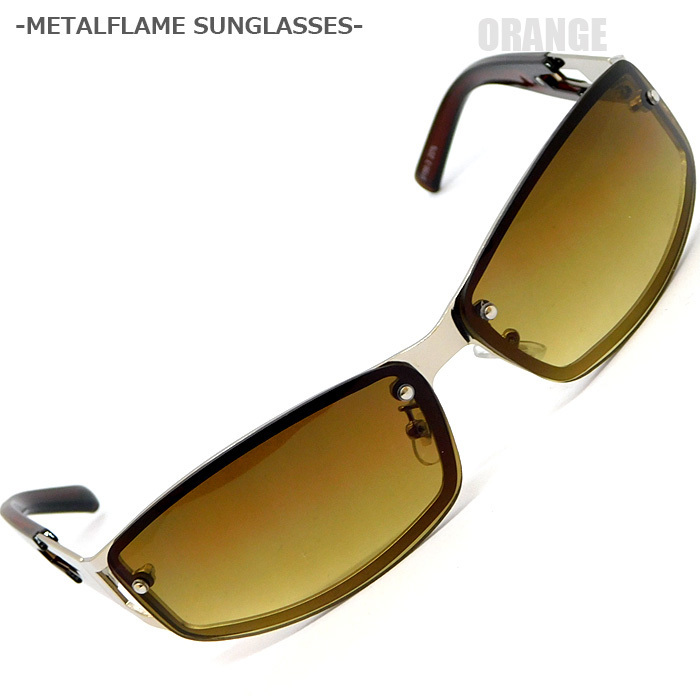 送料無料 チョイ悪系 オラオラ系 サングラス メンズ UVカット スクエア バイカーズ ドライブ 伊達メガネ メタルフレーム ブラウンハーフA☆