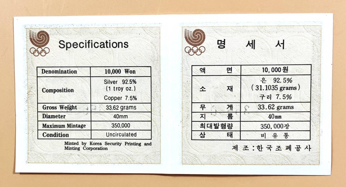 ●ソウルオリンピック記念硬貨(1988年)●10.000ウォン銀貨幣 1枚セット(ケース付)●tz631