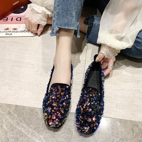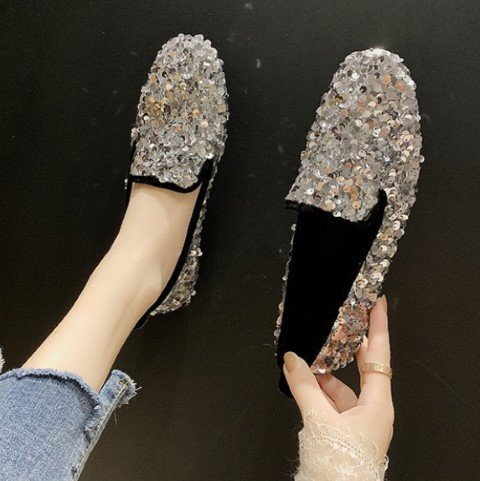 ・足元が華やかになるスパンコールシューズ。