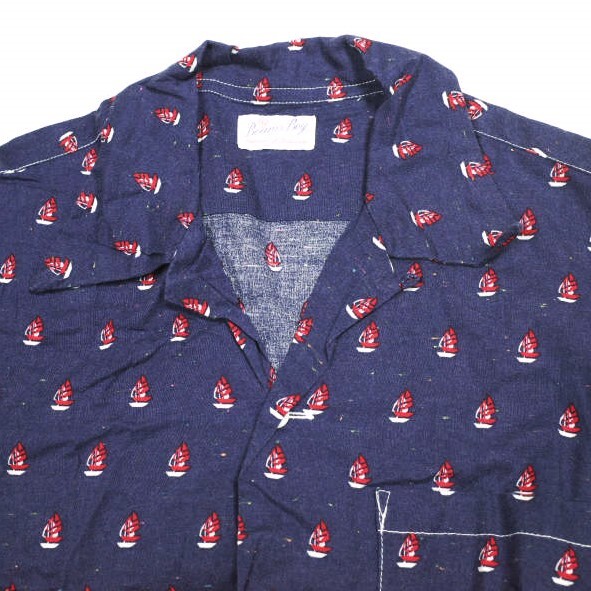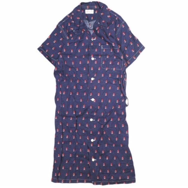 BEAMS BOY ビームスボーイ 日本製 ヨット柄シャツワンピース 13-26-1100-086 ONE SIZE NAVY 半袖 開襟 オープンカラー トップス g13674
