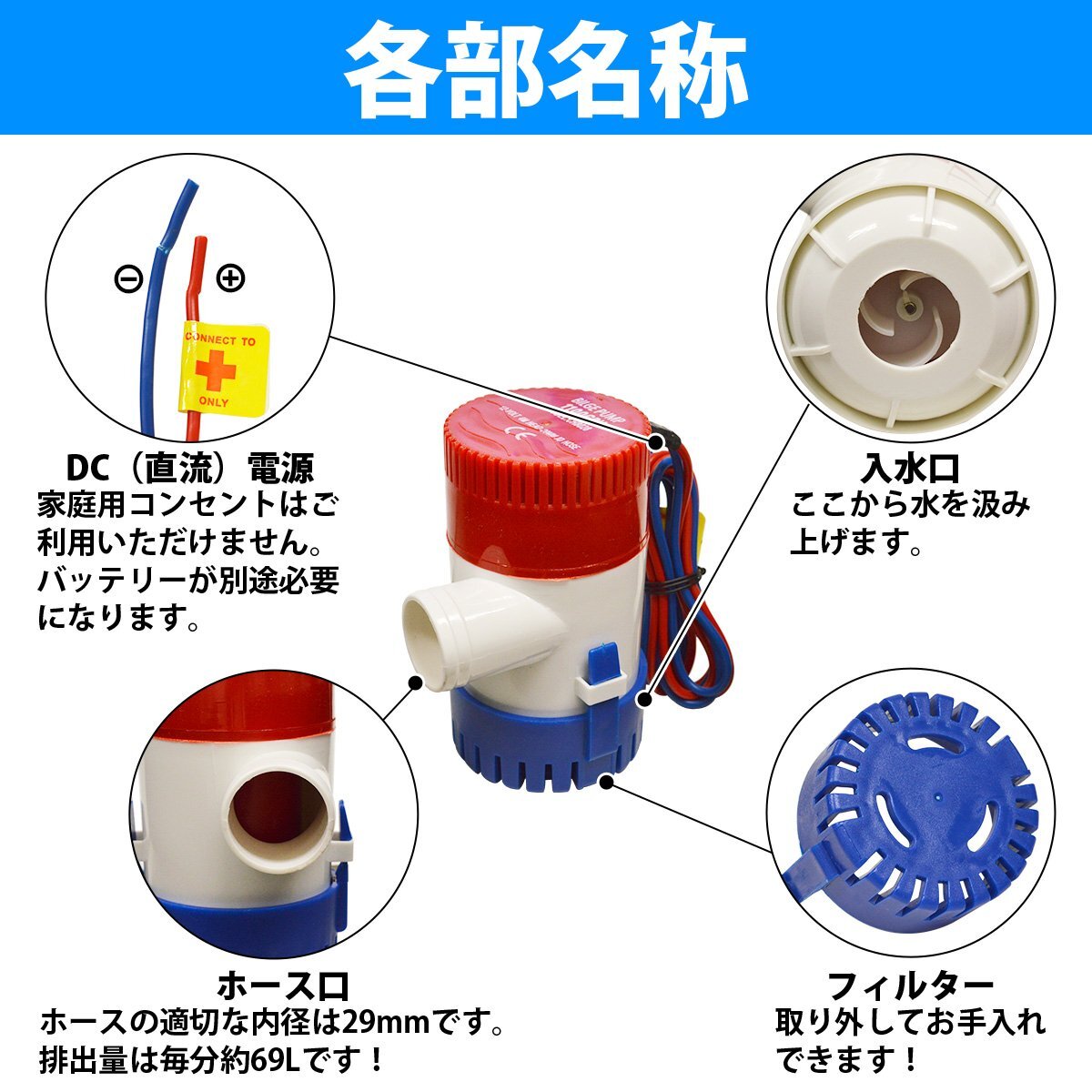 【送料無料】ビルジポンプ 1100GPH 12V 船 ボート 水 排水 水中 小型 ポンプ 海水 淡水 花 ガーデニング 雨水 船 ボート 毎分69L