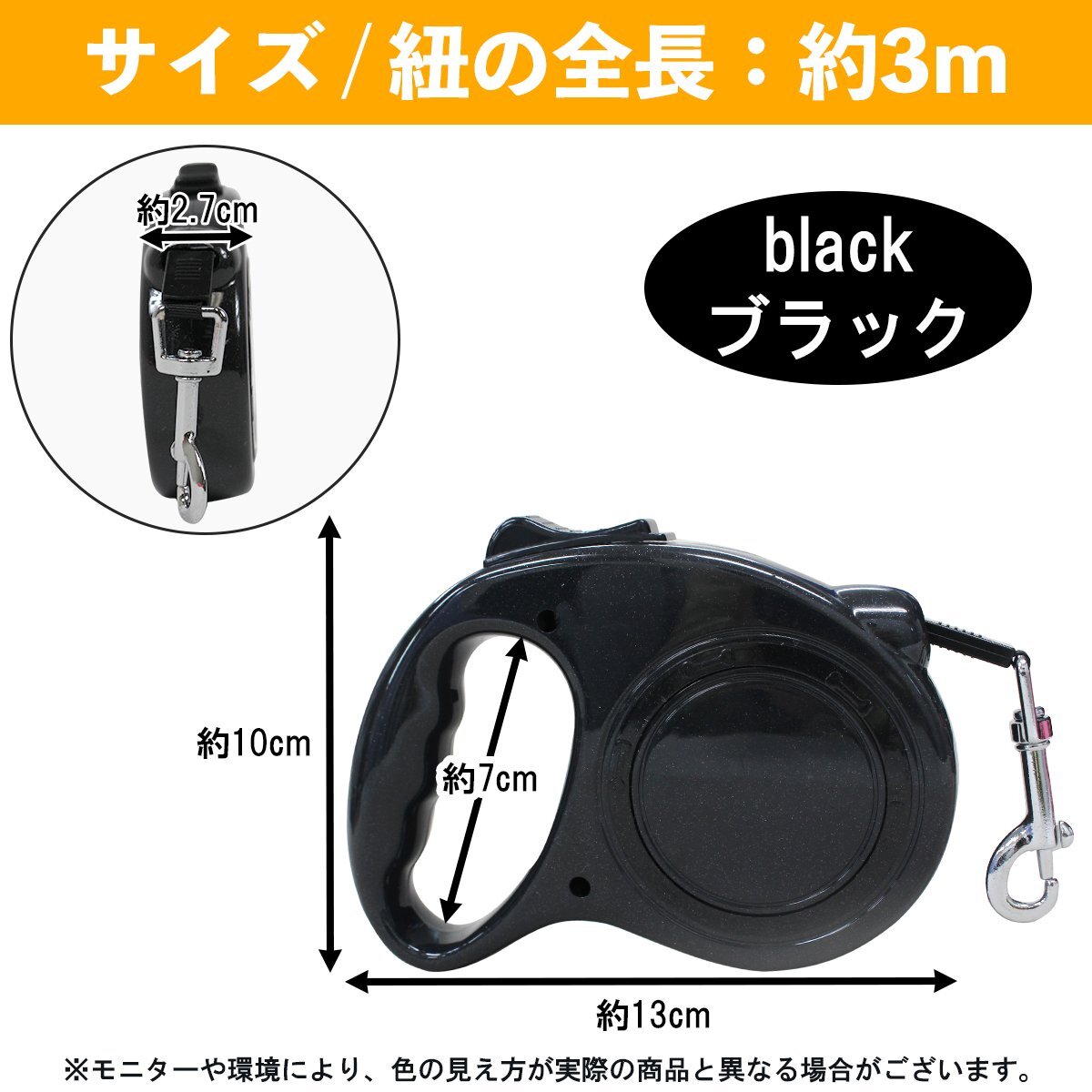 便利なロック機能付き!犬用伸縮リード 3m/3メートル 自動巻き取り ブラック 黒 散歩用リード コンパクト ペット用品 散歩グッズ